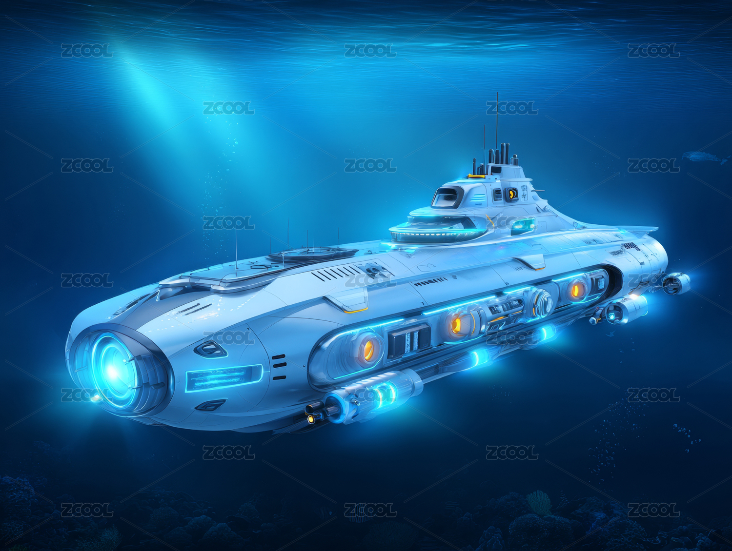 潜艇,深海,未来,科技,光线,水下,科幻,蓝色,海洋,探索
