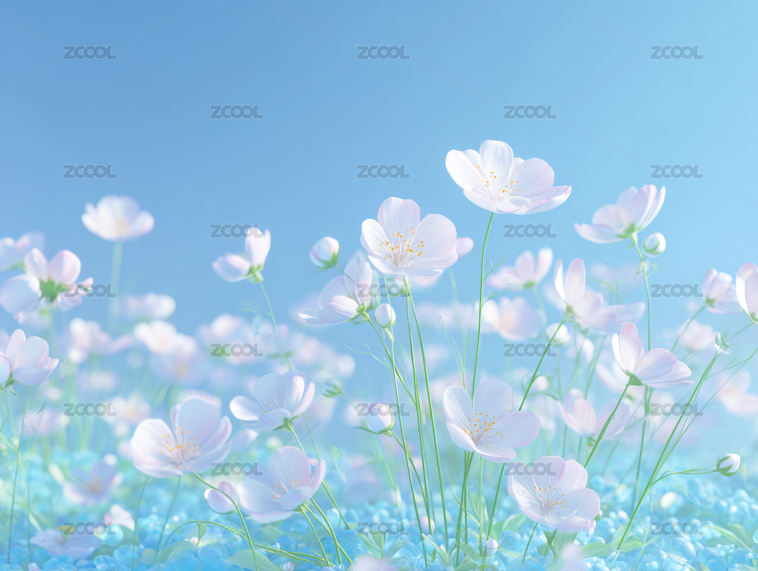 梦幻花海蓝天背景
