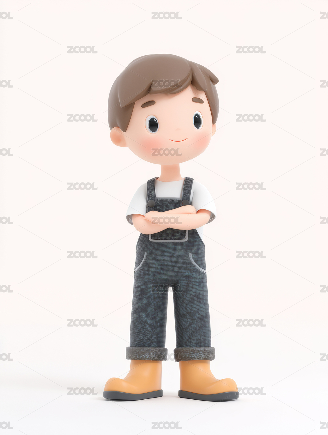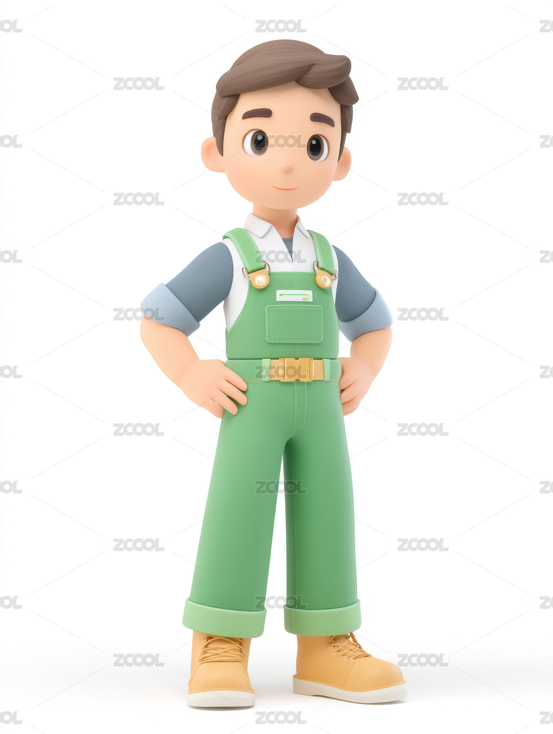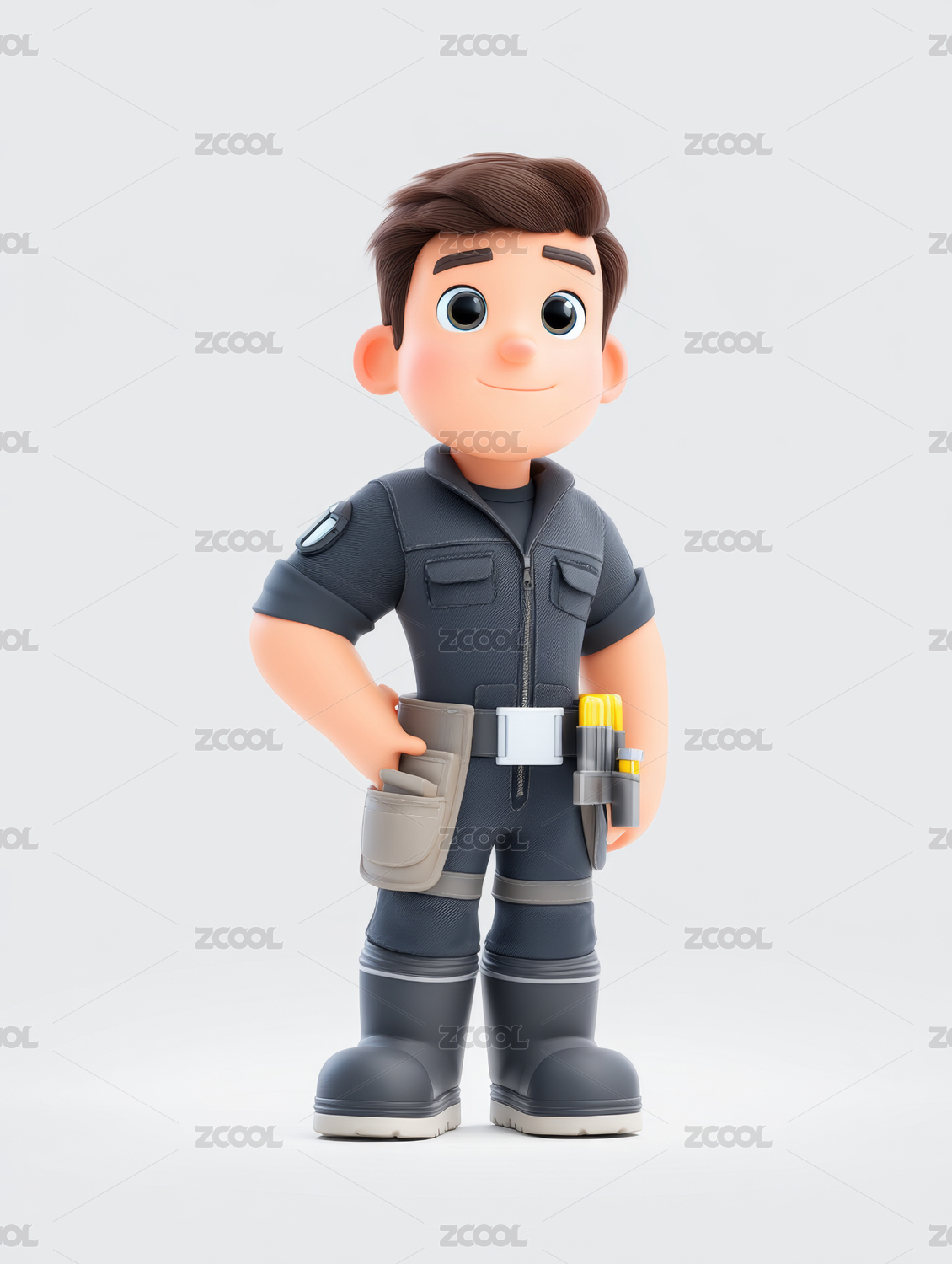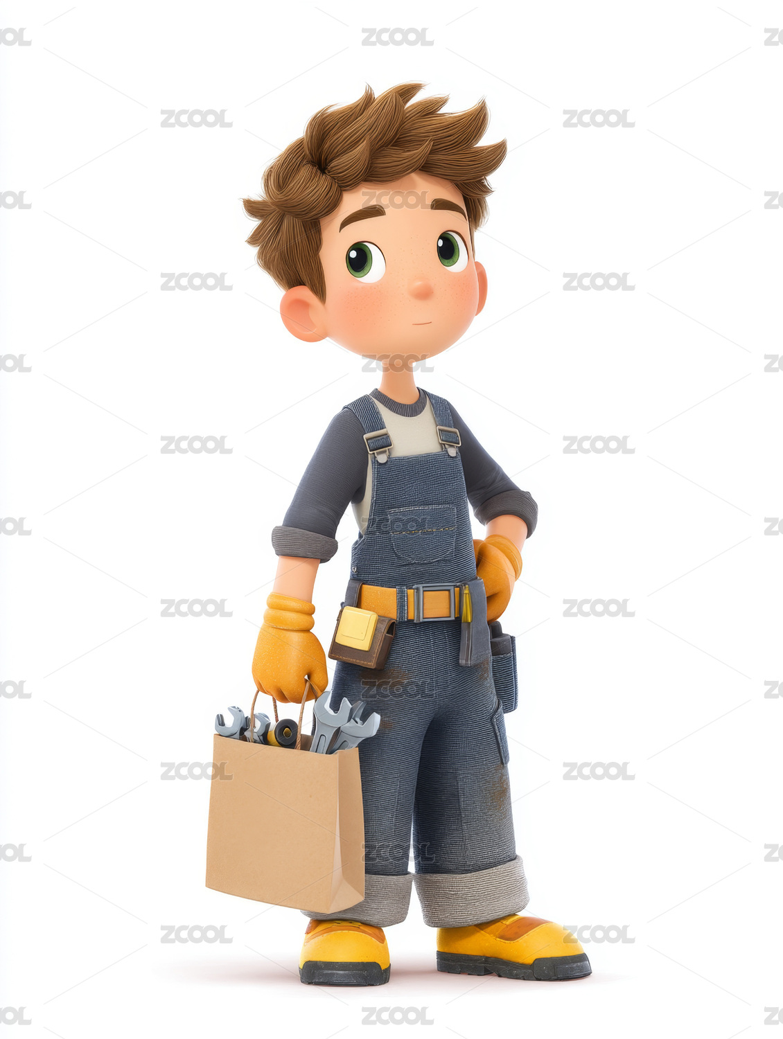 卡通,小工,工具,腰包,蓝色,衣服,交叉,双臂,微笑,男孩