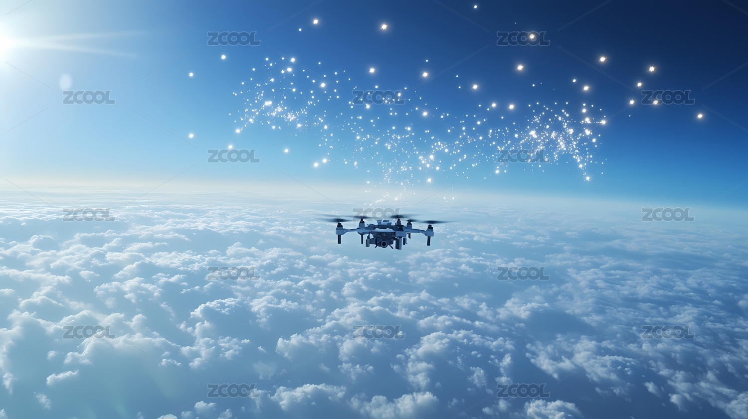 无人机云层之上飞行