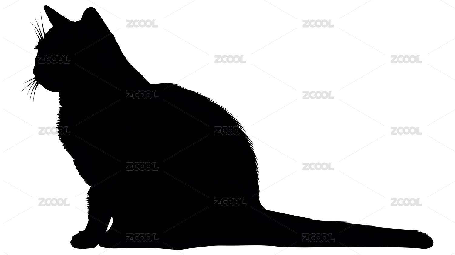 猫,白色,背景,眼睛,黑猫,尾巴,坐姿,安静,剪影,专注