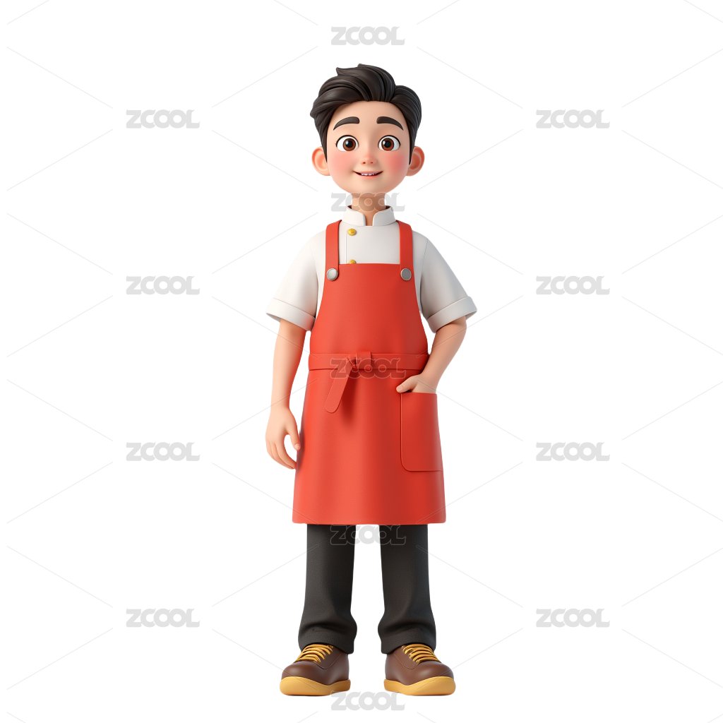 卡通,厨师,围裙,刀具,黄色,鞋子,眼镜,微笑,人物,工作服