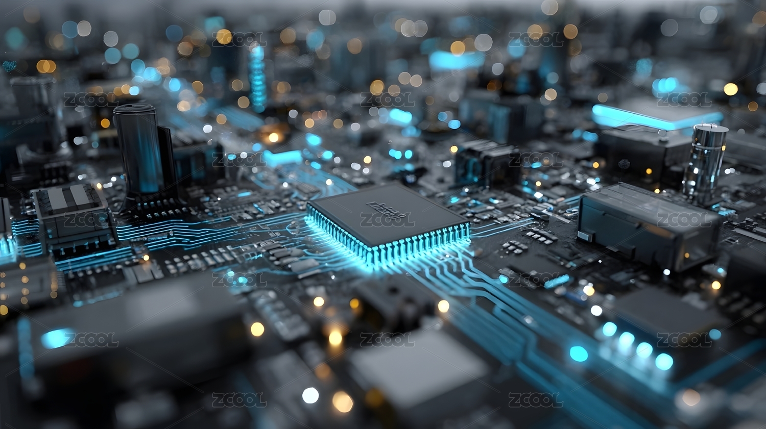 芯片金融科技赛博朋克人工智能三维渲染电路