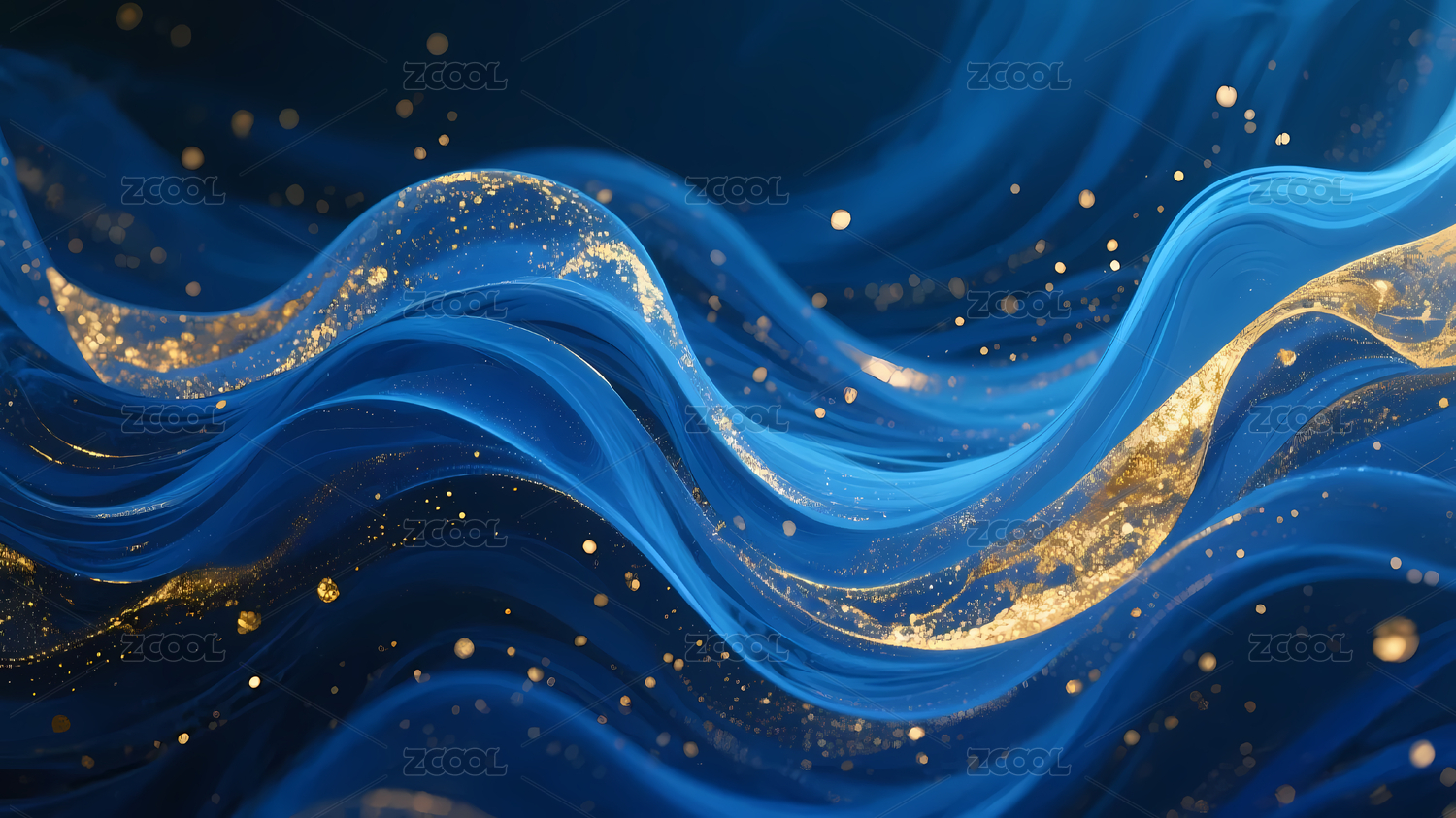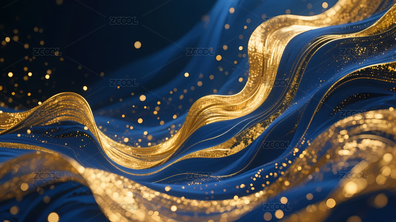 波浪,线条,蓝色,光点,抽象,艺术,渐变,流动,金色,质感