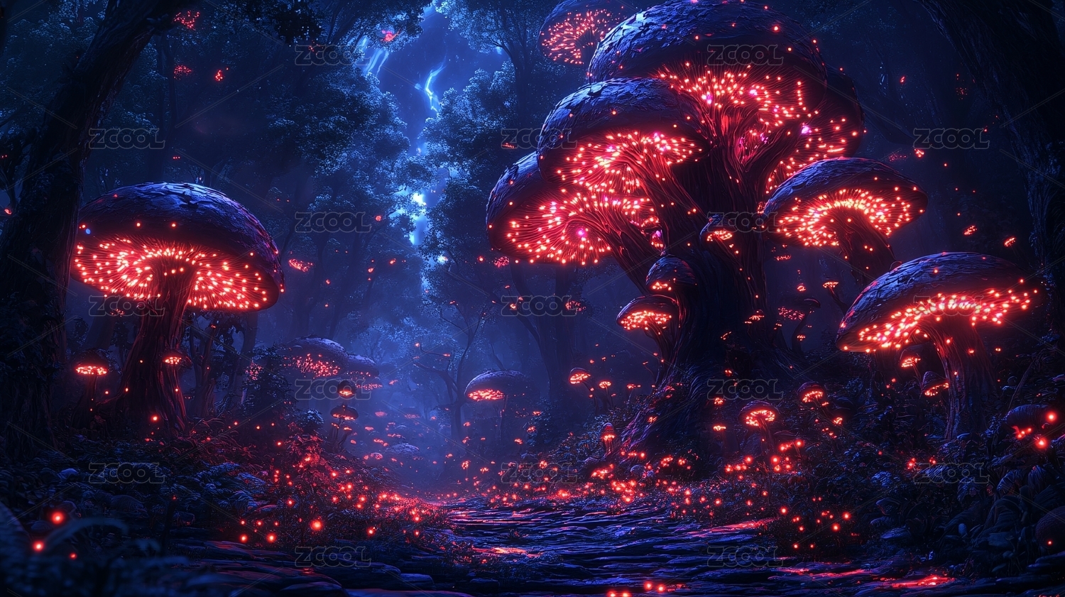 魔幻森林发光蘑菇场景