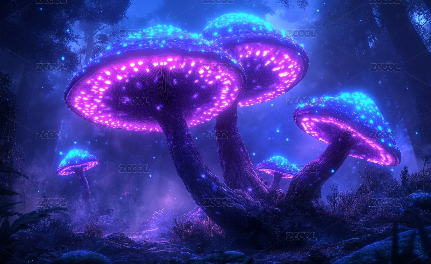 荧光蘑菇梦幻夜景