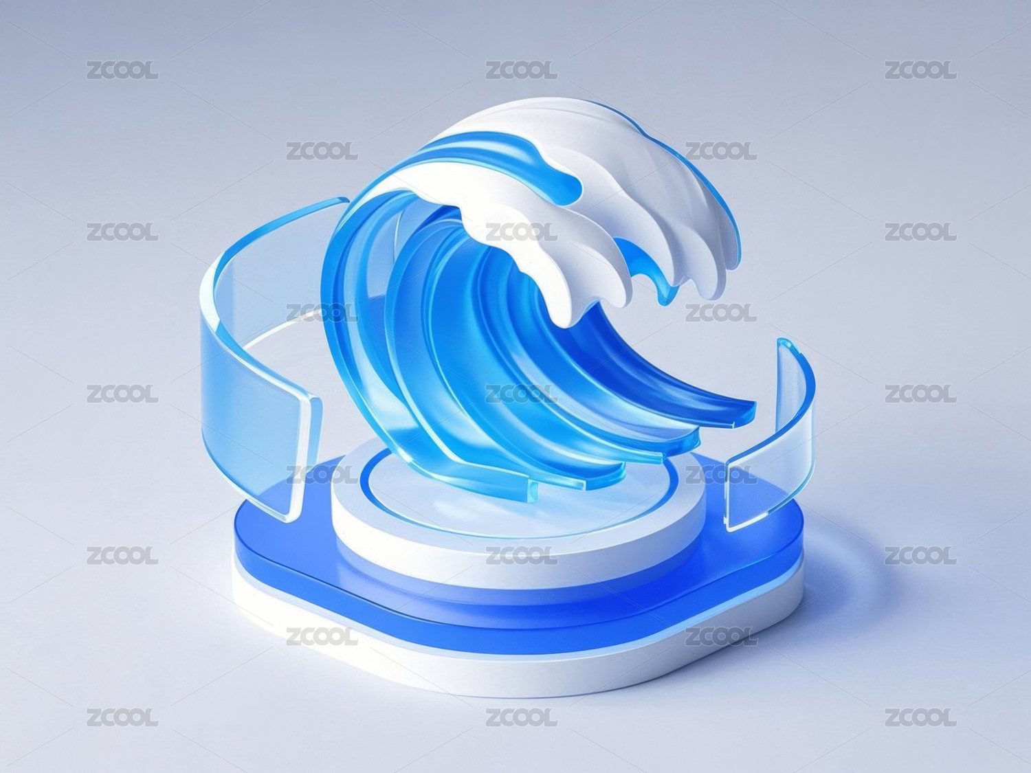 蓝色渐变波浪雕塑