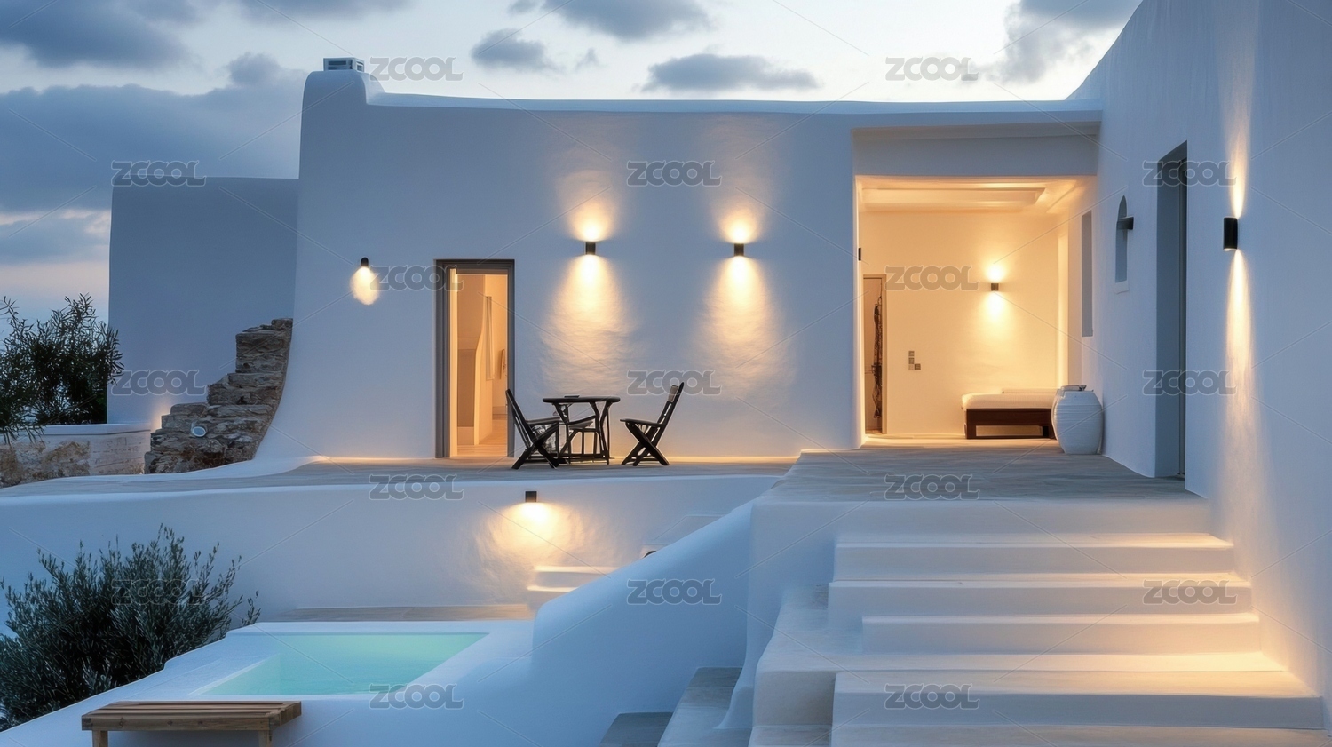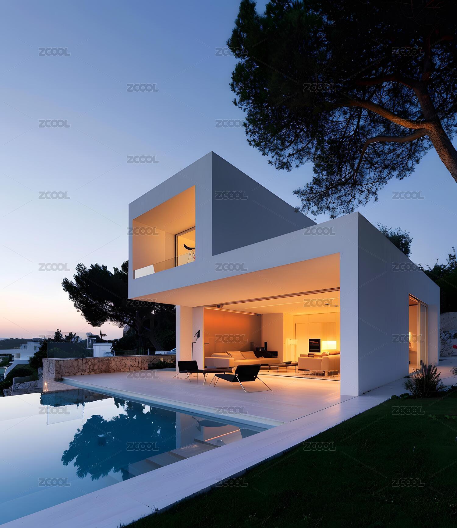 现代极简主义建筑与游泳池