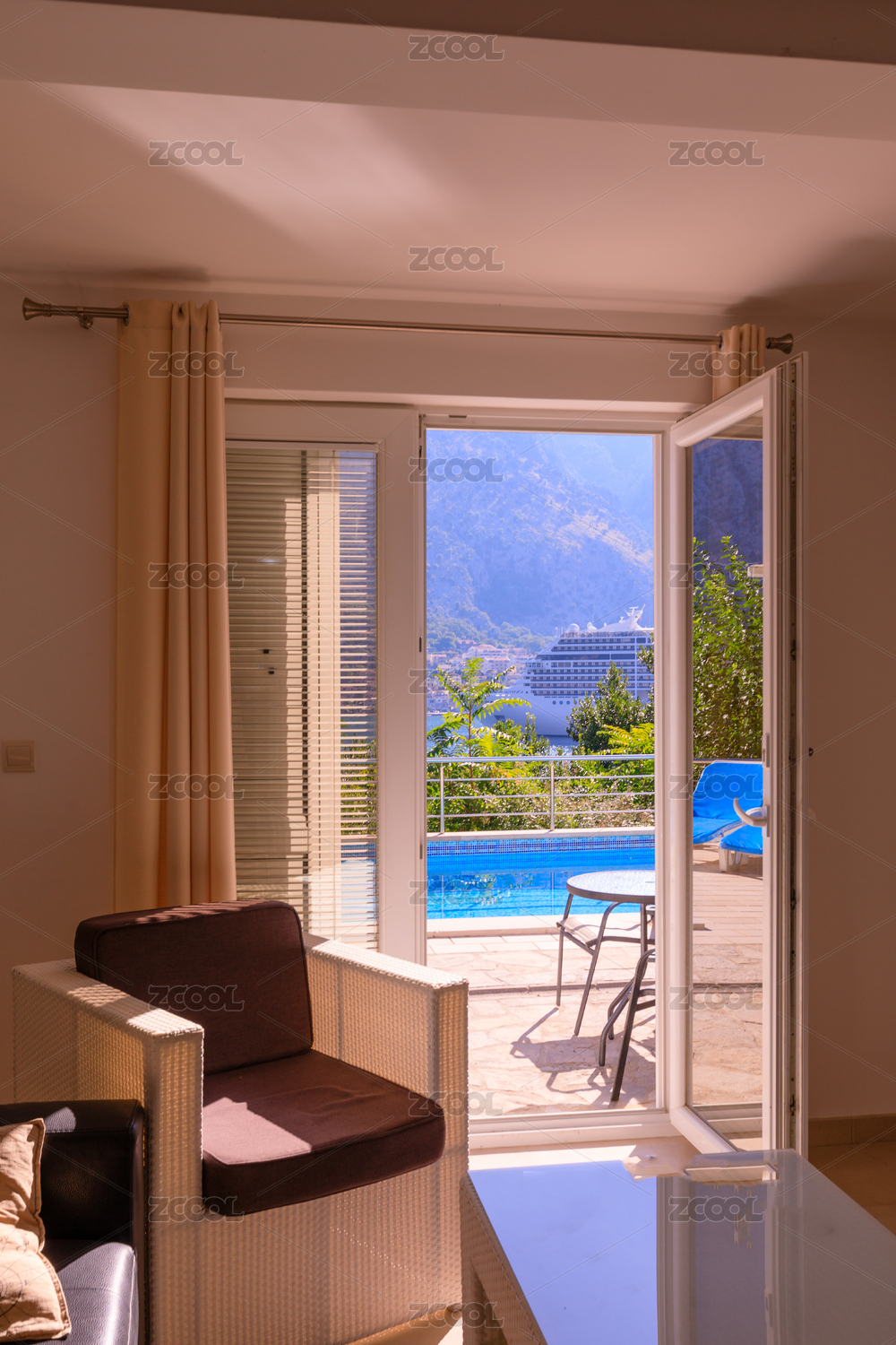 露台,沙发,躺椅,室内,户外,植物,建筑,阳光,桌椅,窗户