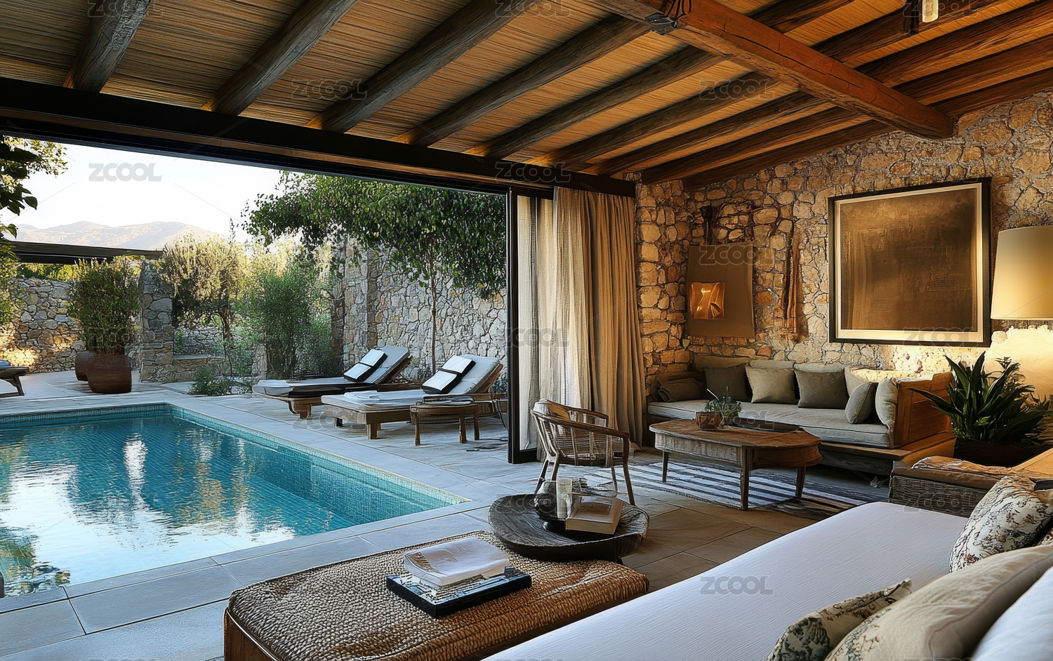 带泳池的石头别墅