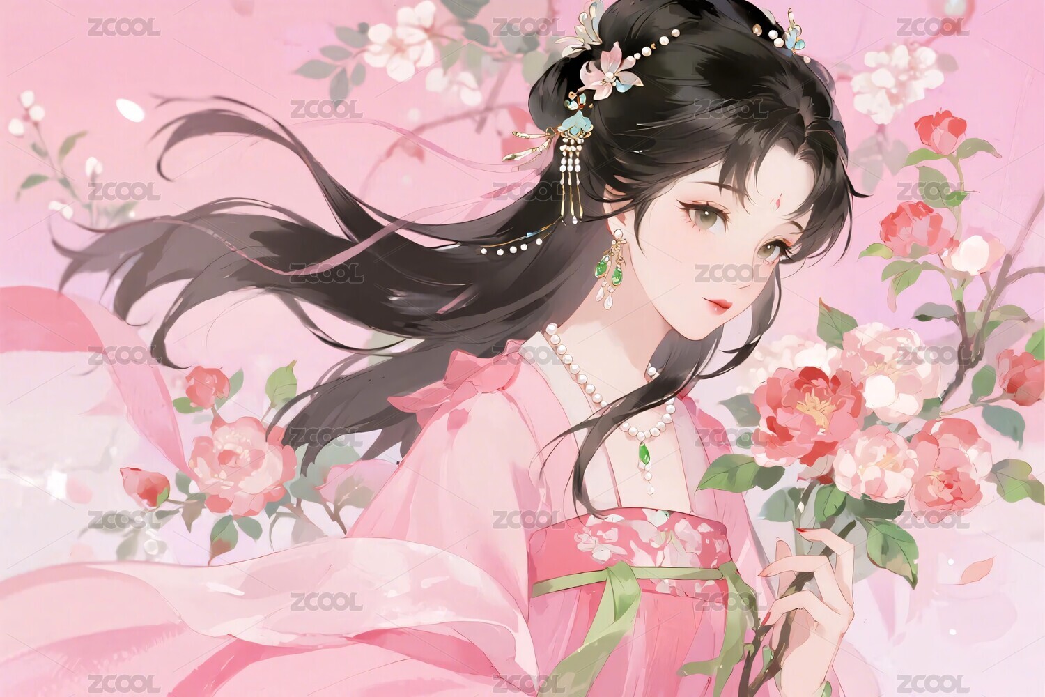 樱花,琵琶,女子,古装,乐器,花瓣,自然,艺术