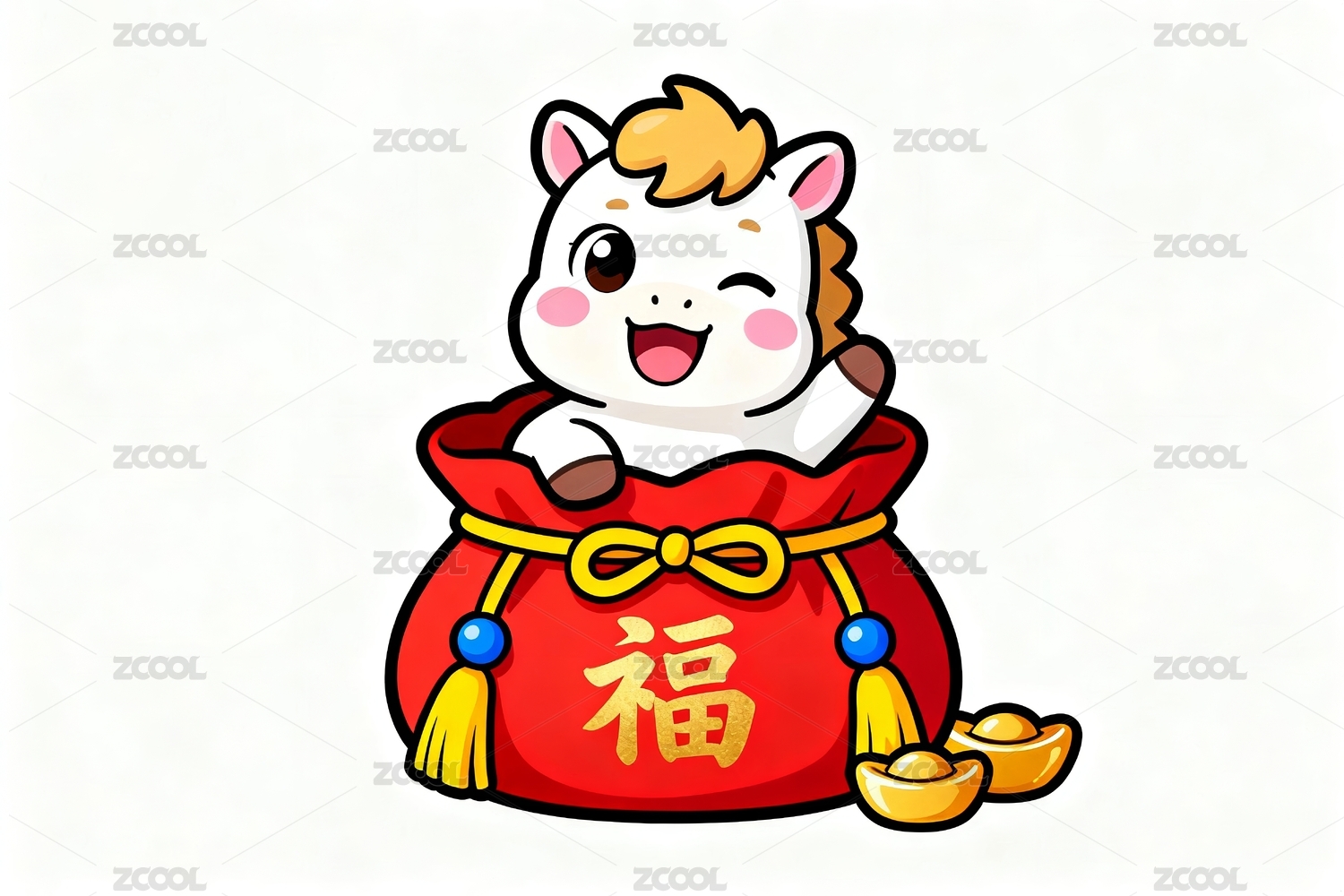 卡通马拟人金元宝金币红包插画