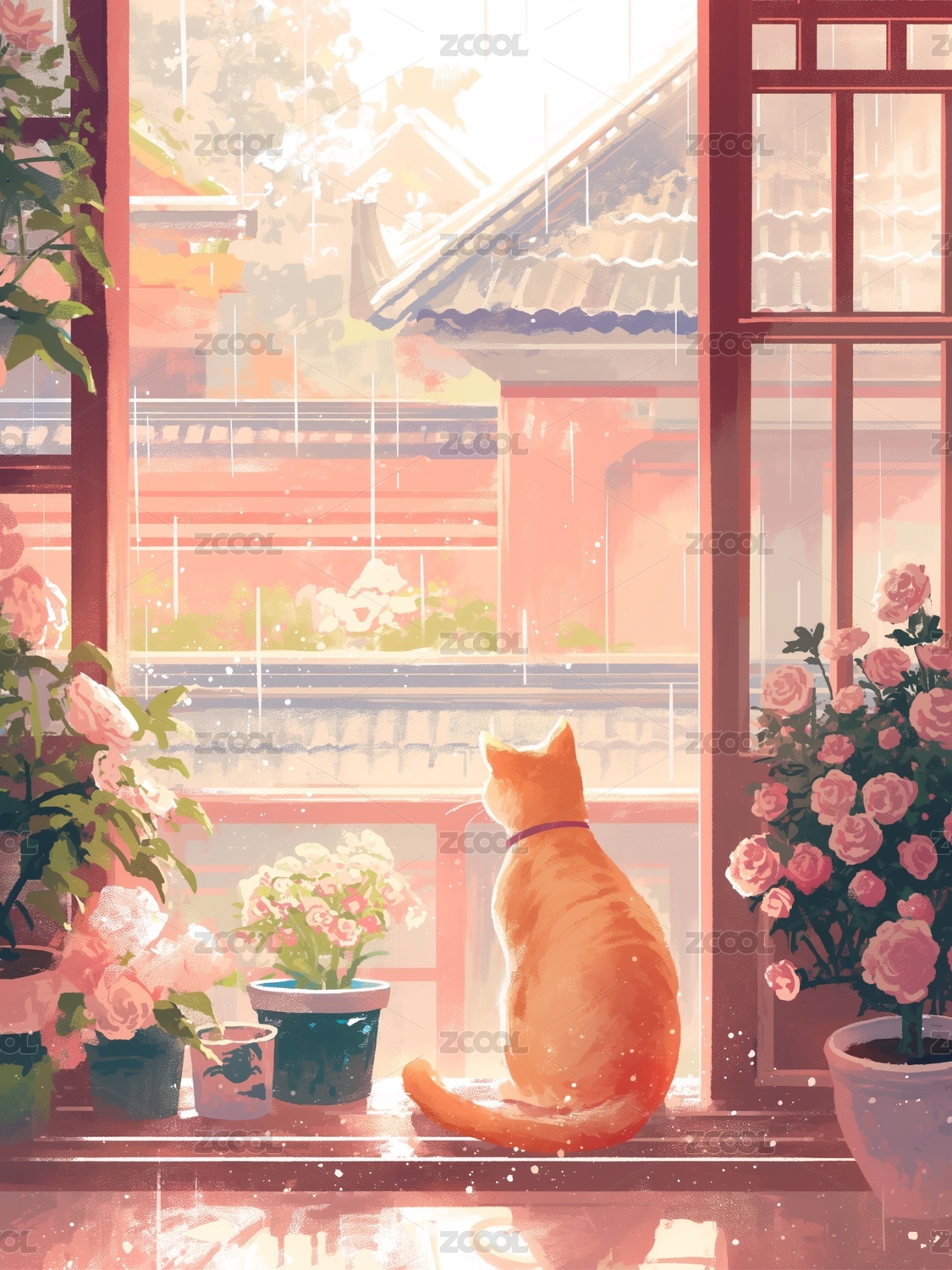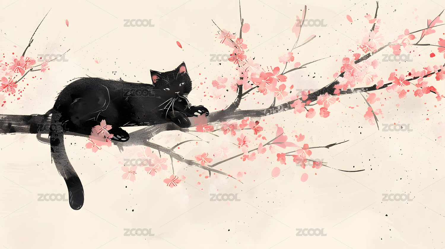 自然,猫咪,艺术,光影,花卉,传统,窗户,桃花,室内,宠物