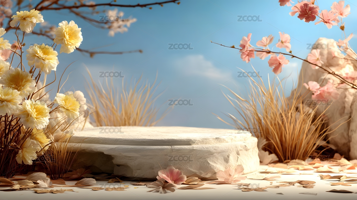 地面,阳光,蓝天,背景,石头,自然,天空,植物,石块,枝干