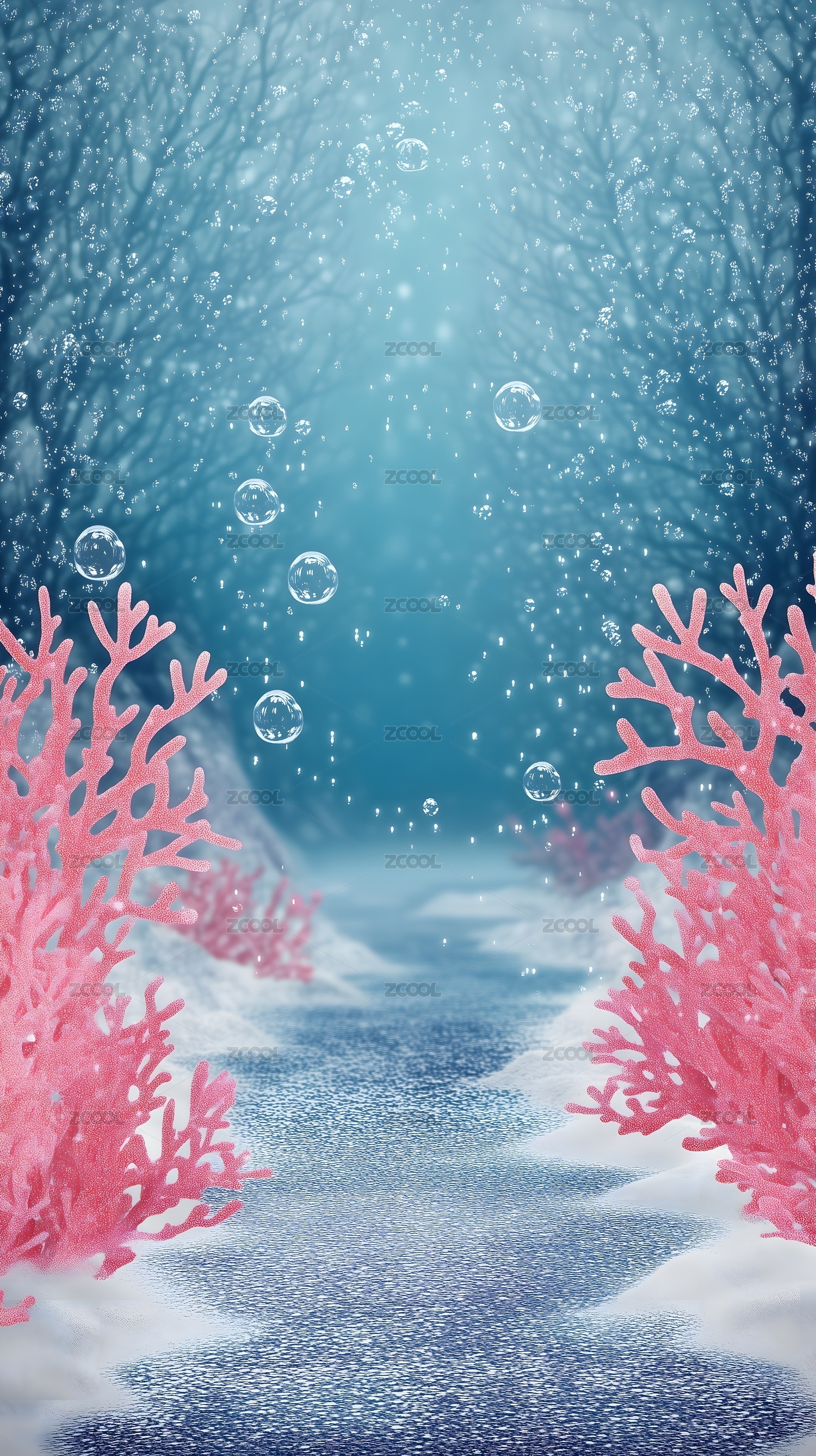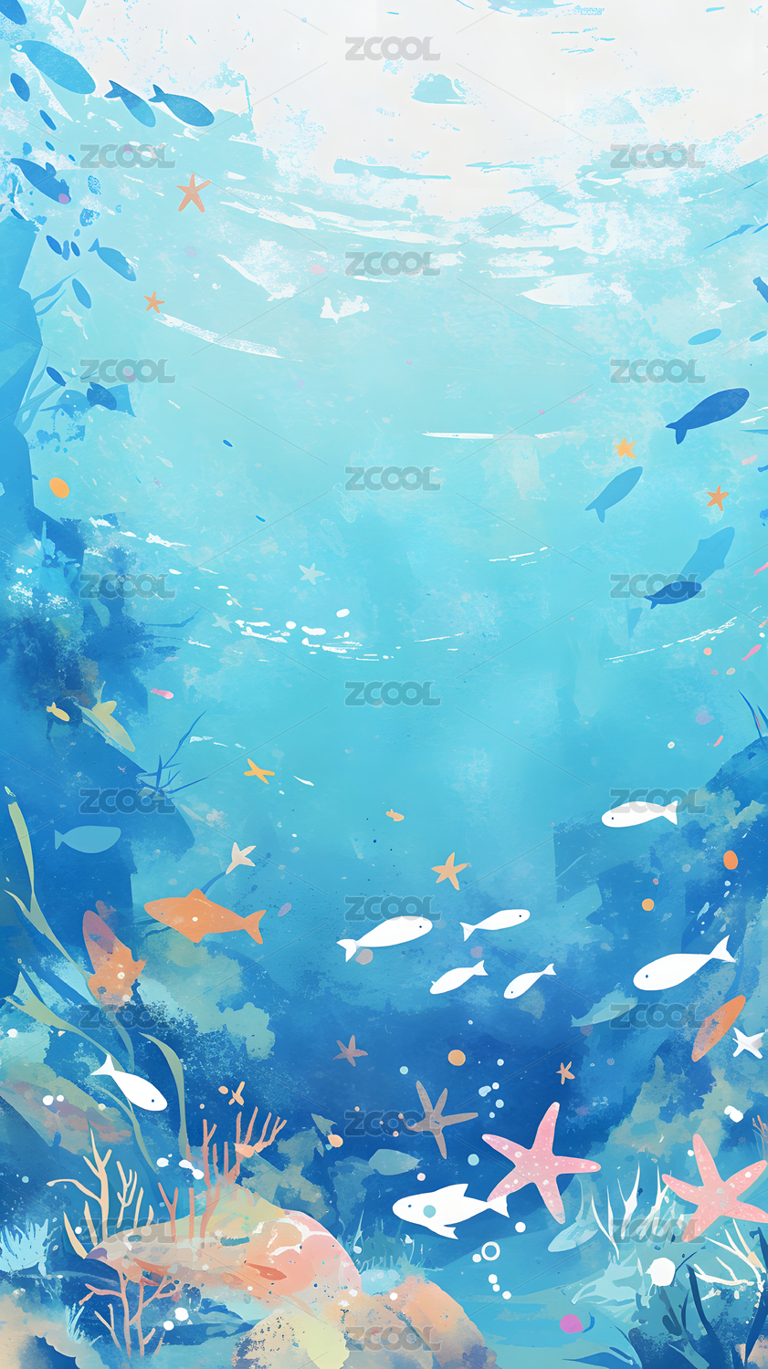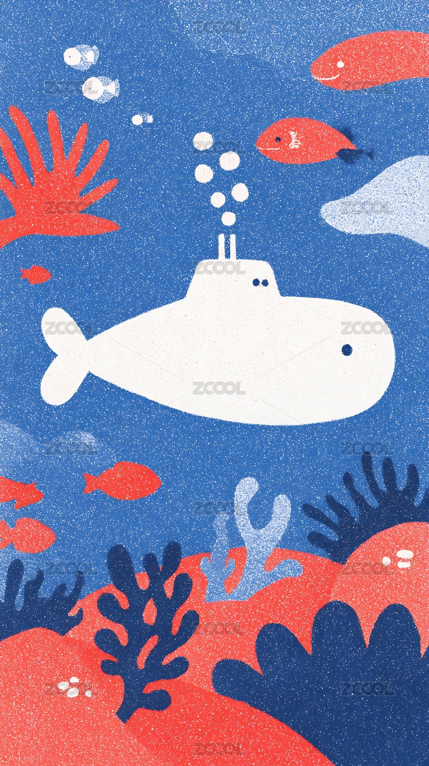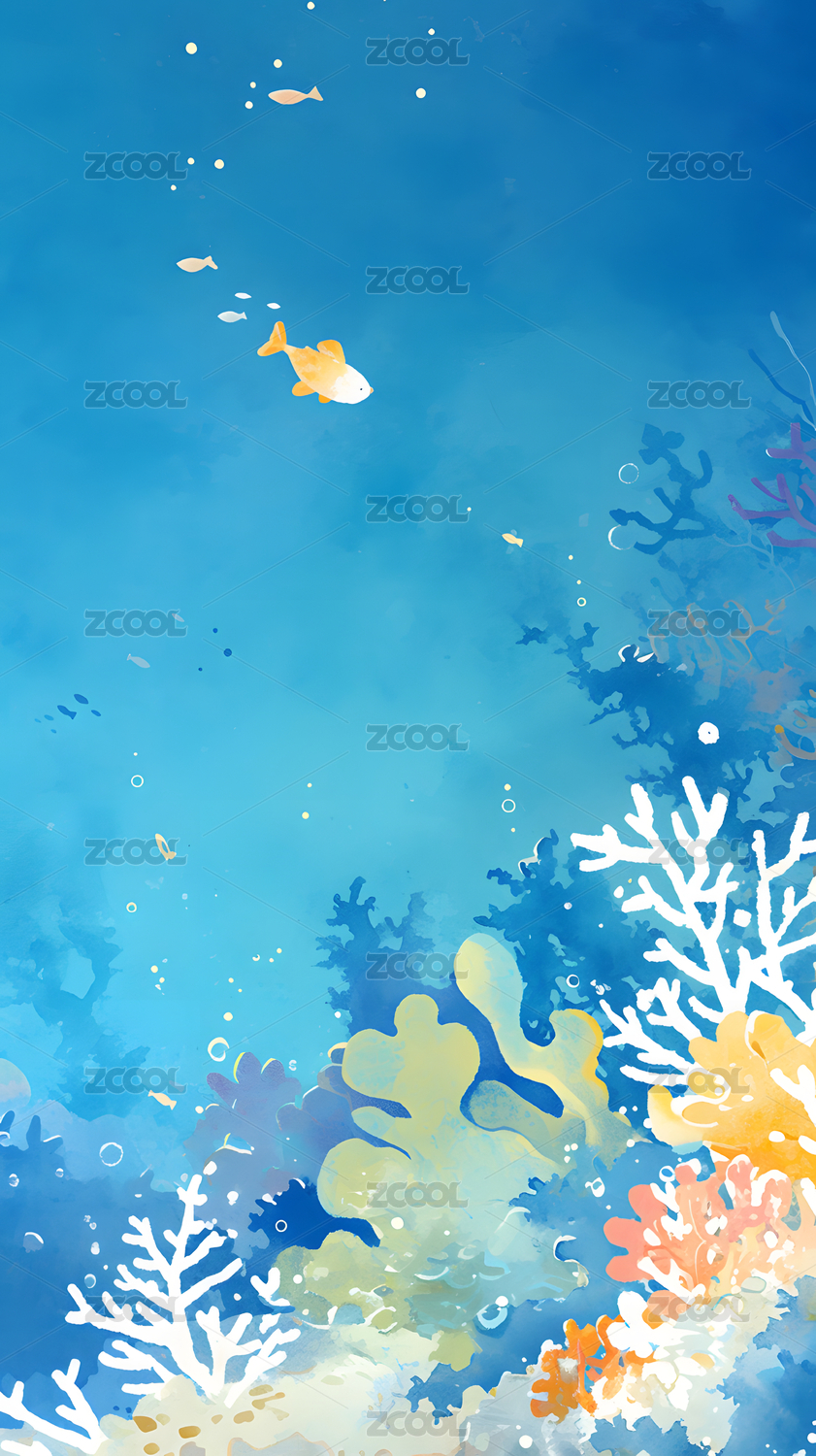 印刷复古清新明亮海底的彩色珊瑚插画绘画