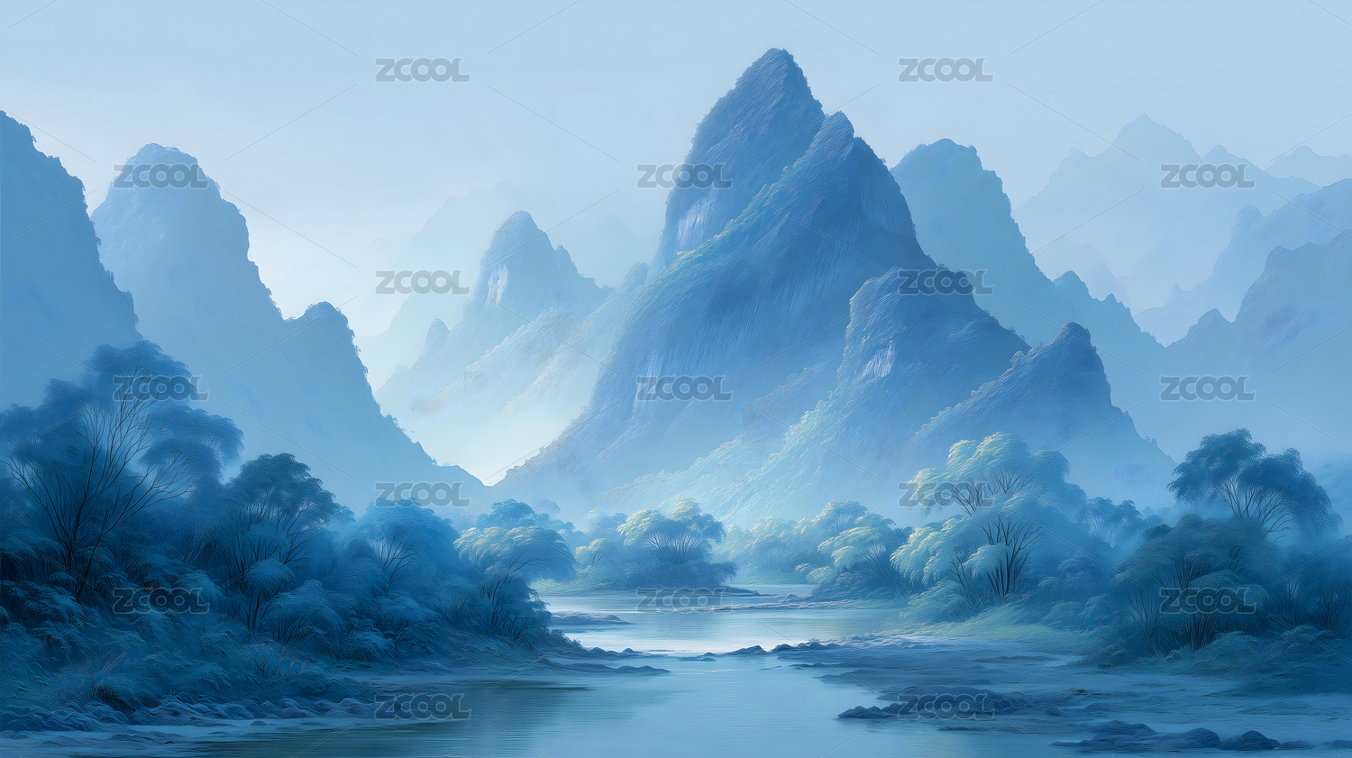 意境,自然,光影,倒影,山峰,宁静,植物,风景,湖面,天空