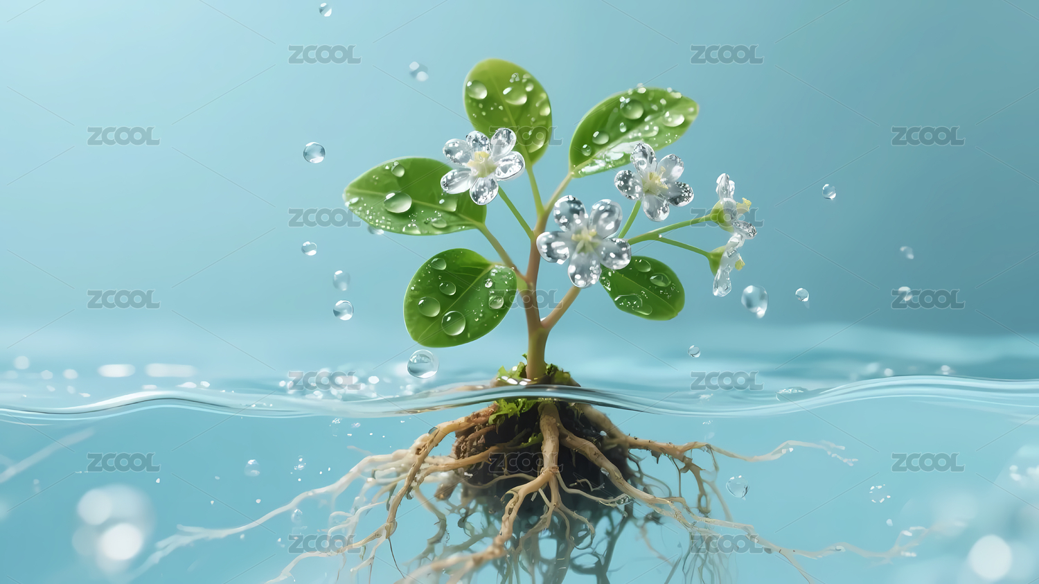 自然,深蓝,渐变,背景,叶片,柔和,白色,生机,幼苗,水波