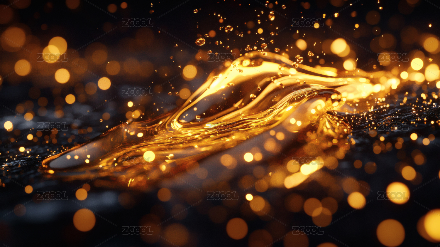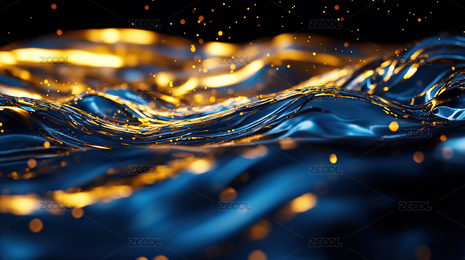 明亮,波浪,艺术,动感,流动,深蓝,金色,光点,闪耀,液体