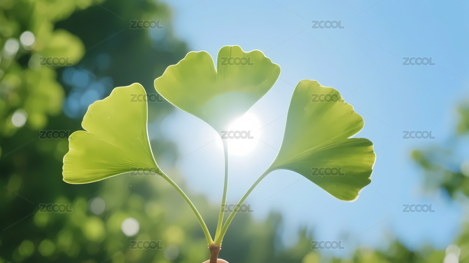 清新,自然,绿色,植物,银杏叶,阳光,蓝天,叶片,叶脉,细节