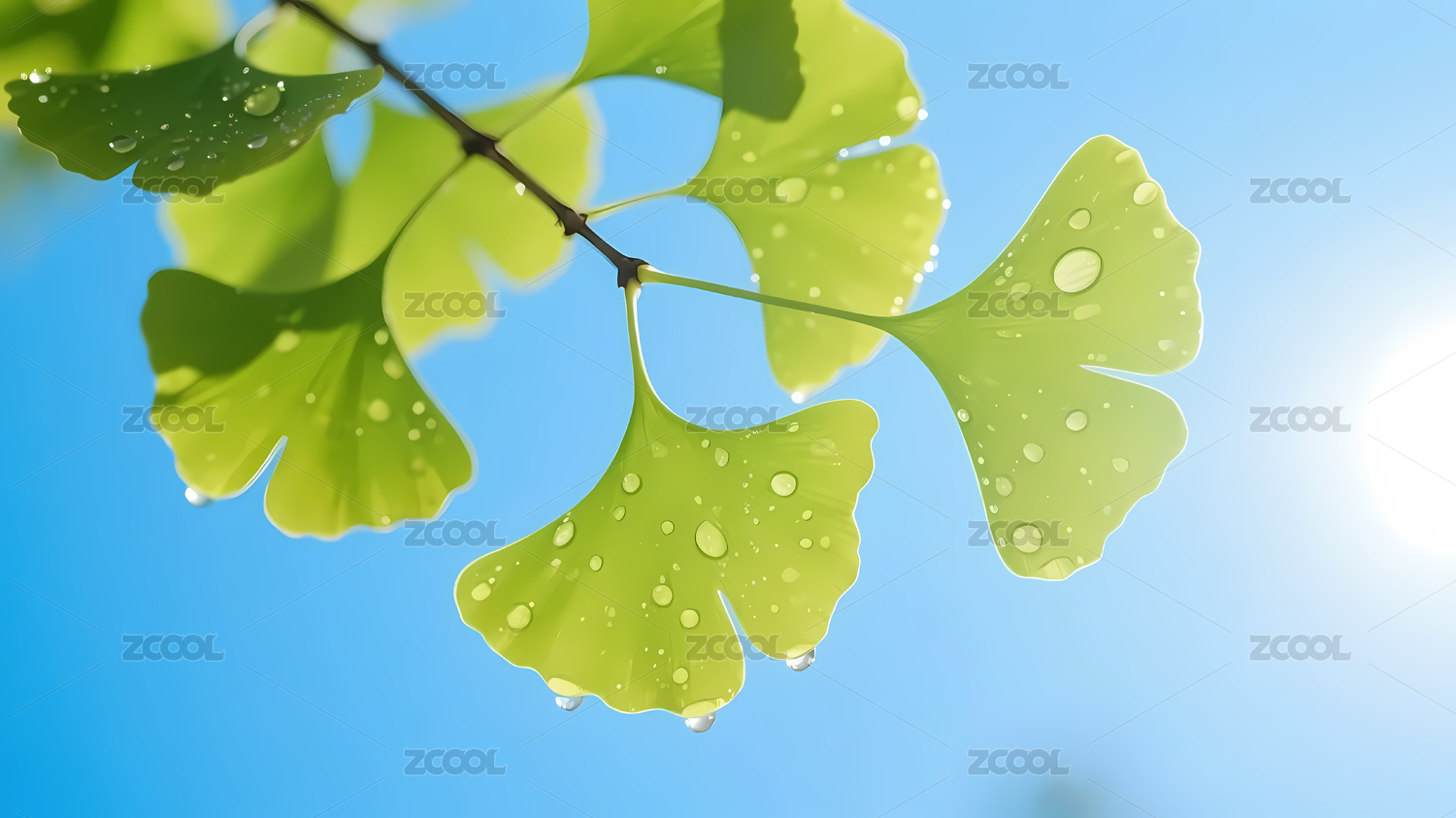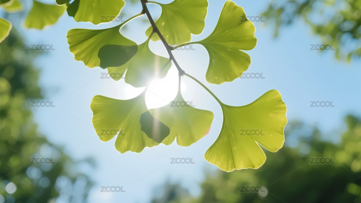 背景,清新,自然,绿色,形状,植物,银杏叶,蓝天,叶片,独特