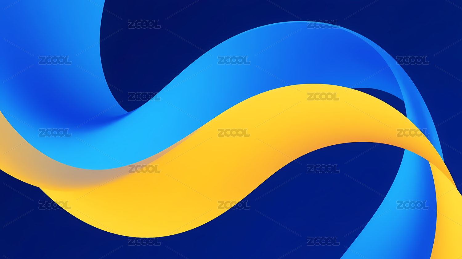 蓝黄弯曲线条与深蓝背景