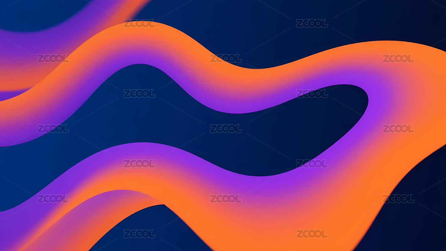 橙蓝流线型曲线与深色背景