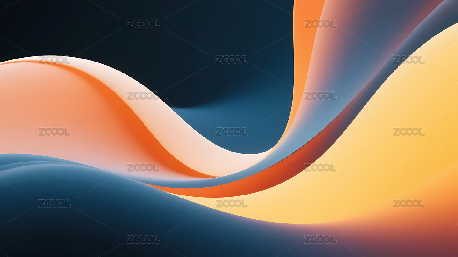 蓝橙渐变抽象波浪图案