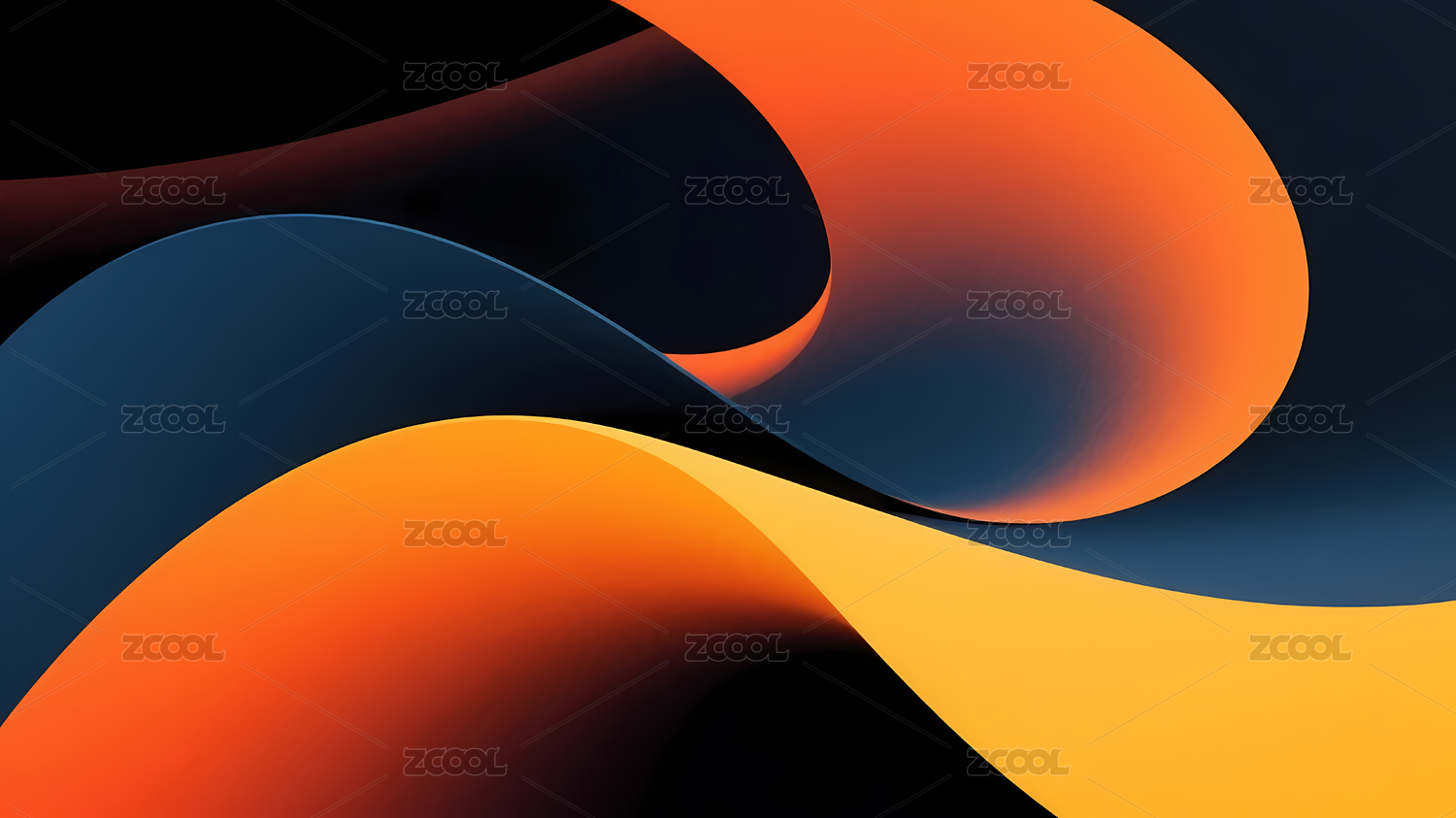 橙色弯曲形状与深蓝背景