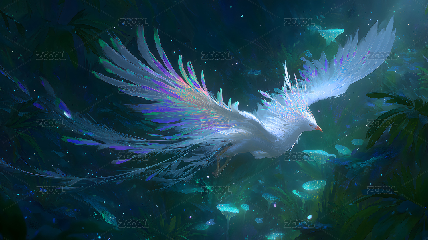 蓝色,梦幻,光芒,背景,优雅,圣洁,纯白,羽毛,飞翔,森林