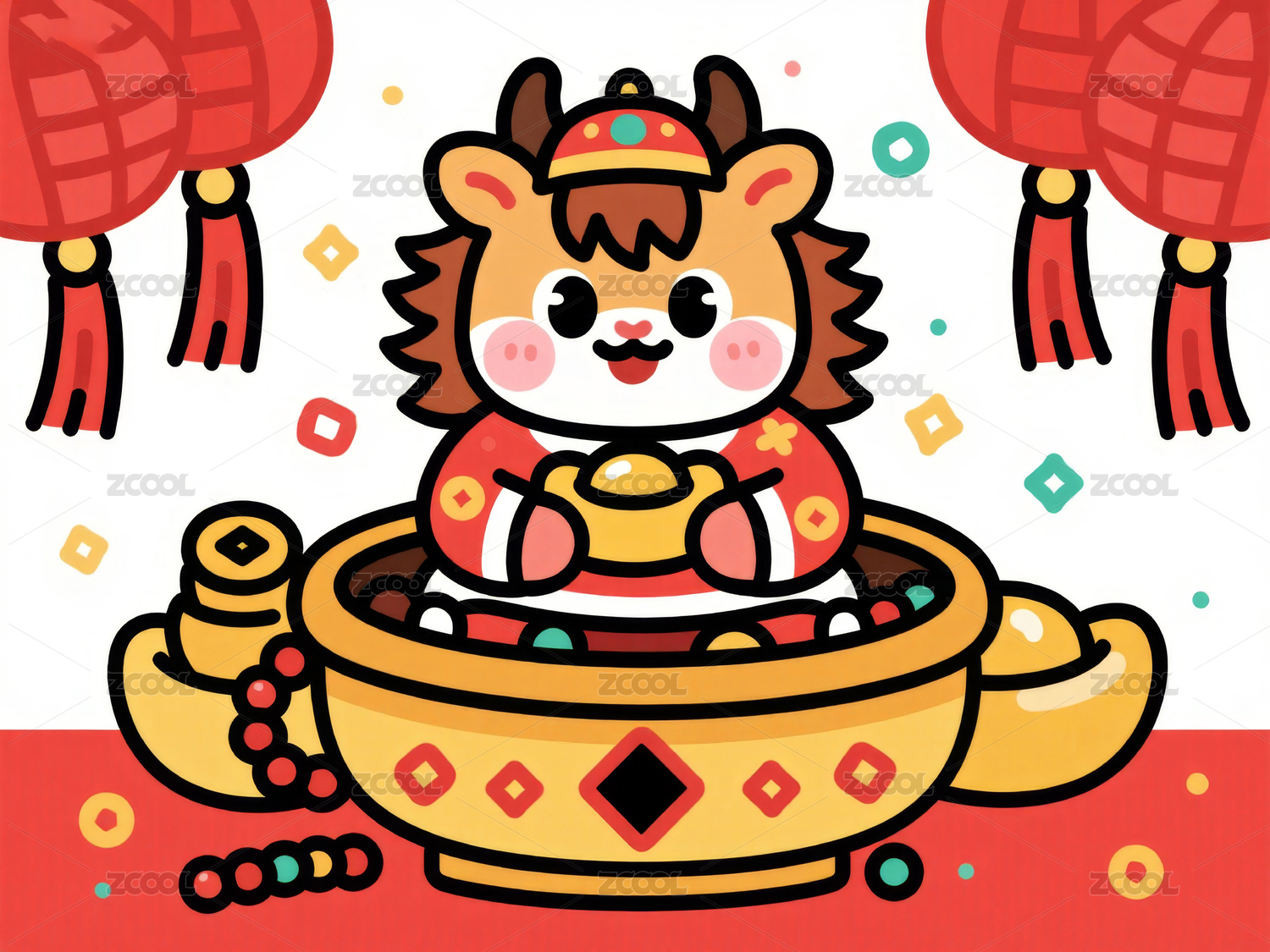 卡通马戴舞狮帽金币飞舞