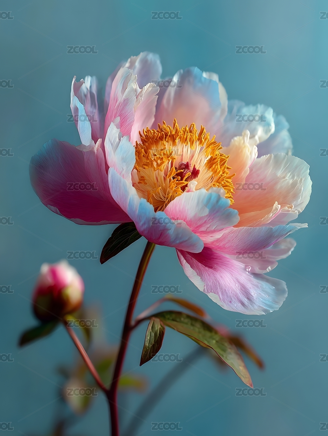 柔美粉色牡丹花特写