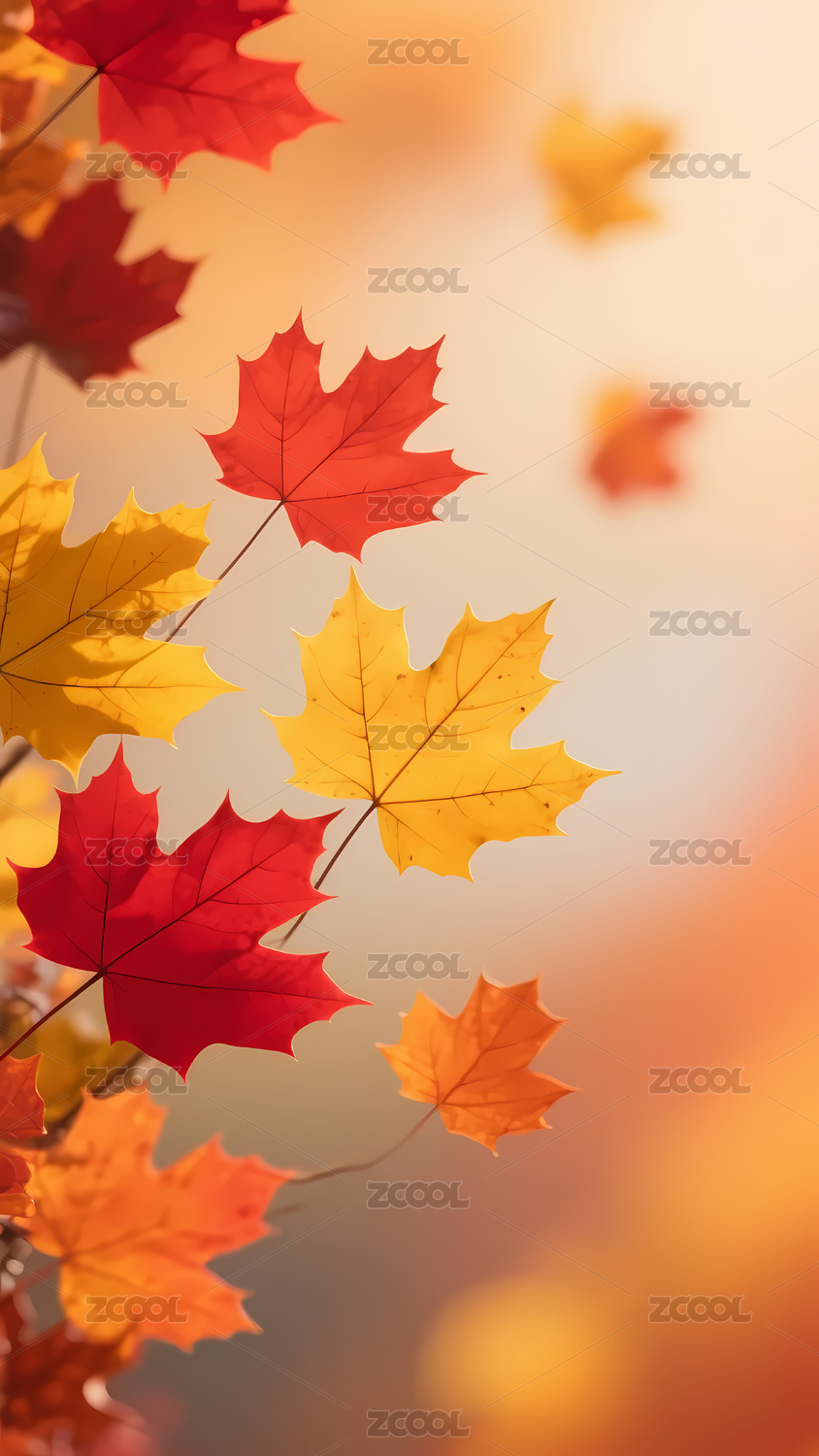 秋叶,飘落,色彩,斑斓,枫叶,黄色,红色,绿色,自然,季节