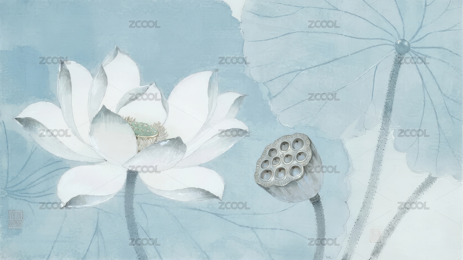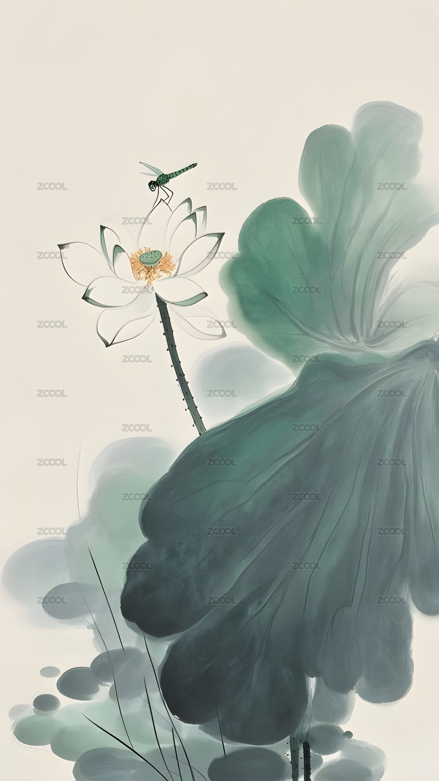 水墨荷花与荷叶
