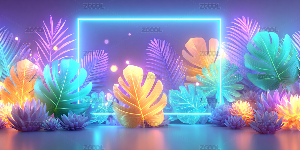 霓虹光框热带叶片装饰背景