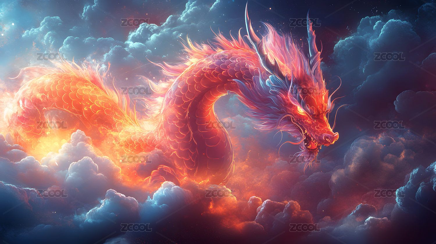 氛围,唯美,粉色,花朵,柔软,云海,梦幻,飘逸,巨龙,翱翔