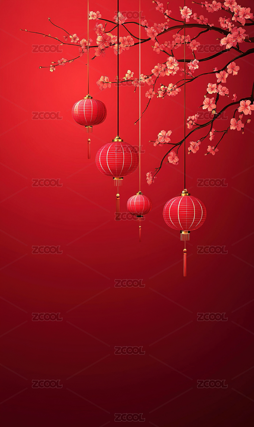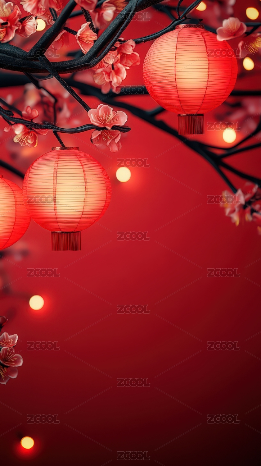 红灯笼与樱花树枝背景图