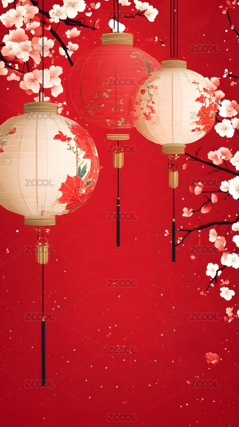 红灯笼与梅花枝条背景图