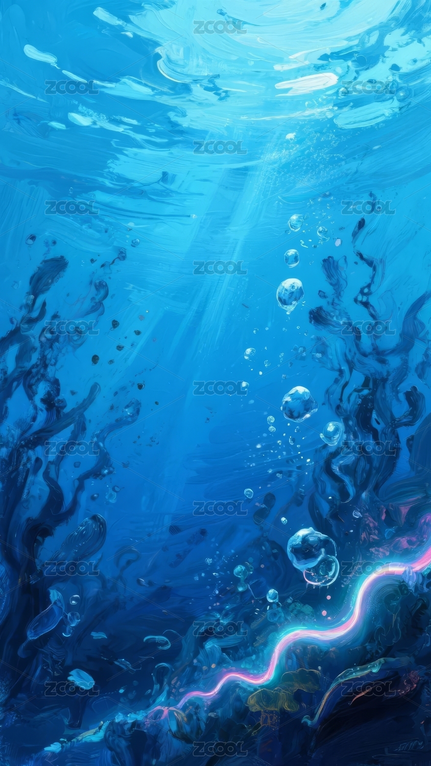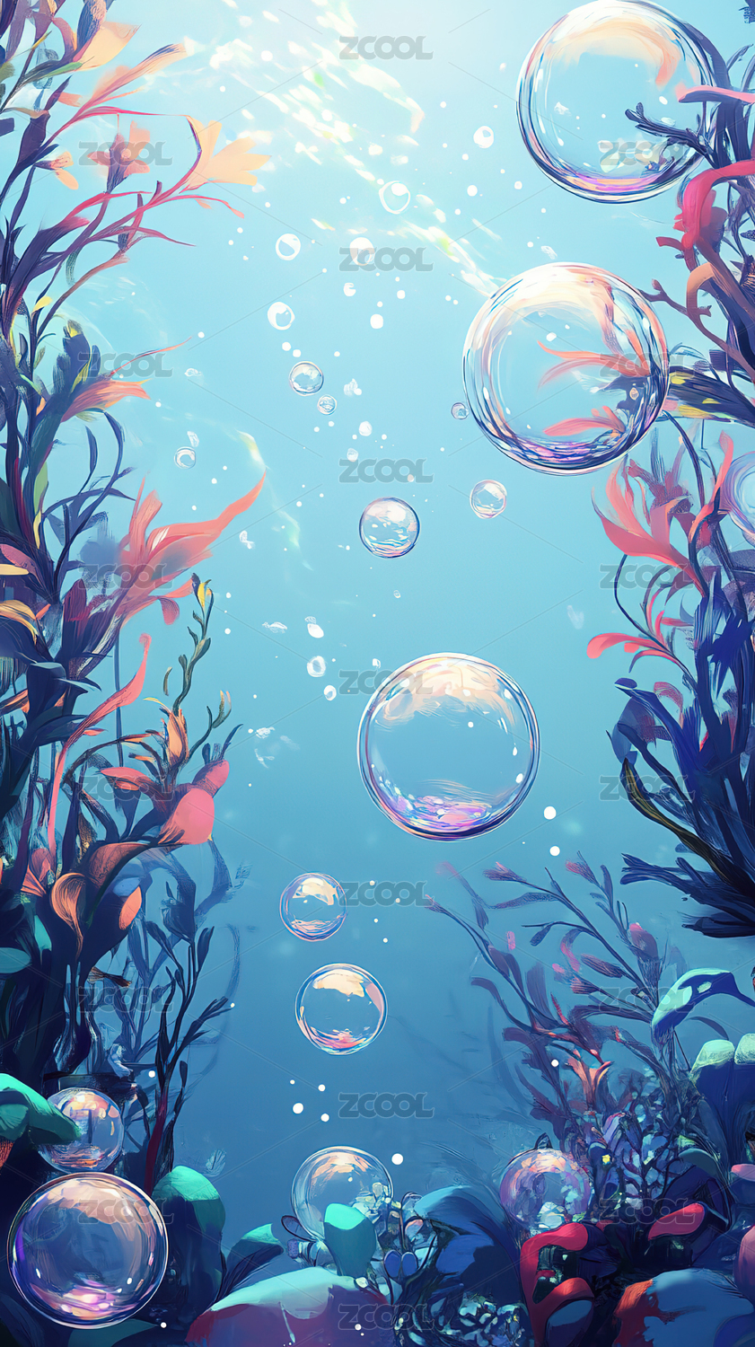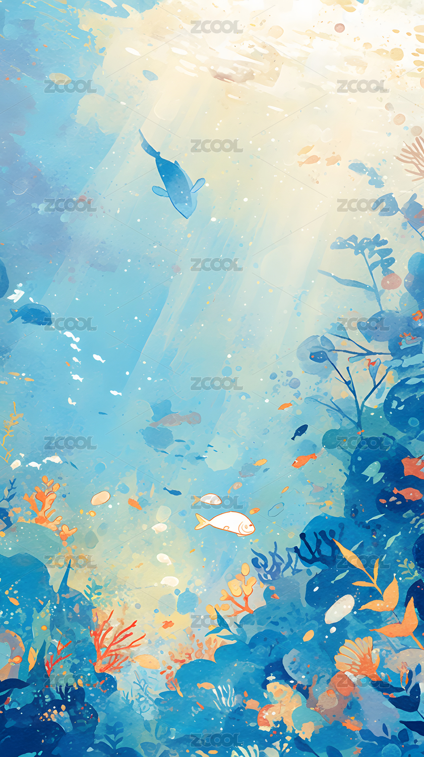 印刷复古清新明亮海底的彩色珊瑚插画绘画