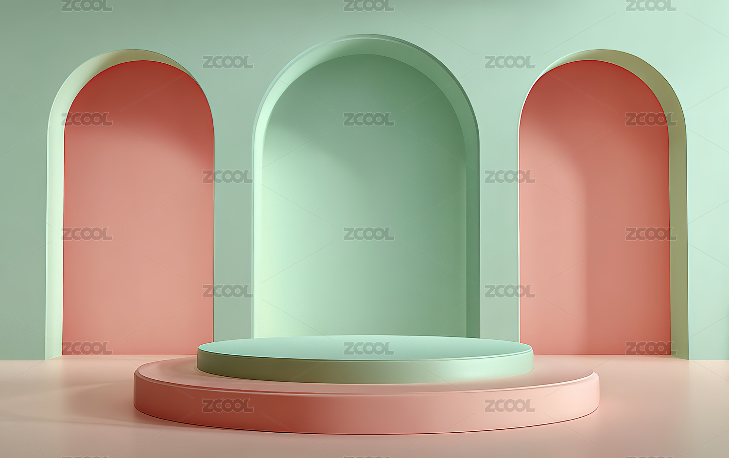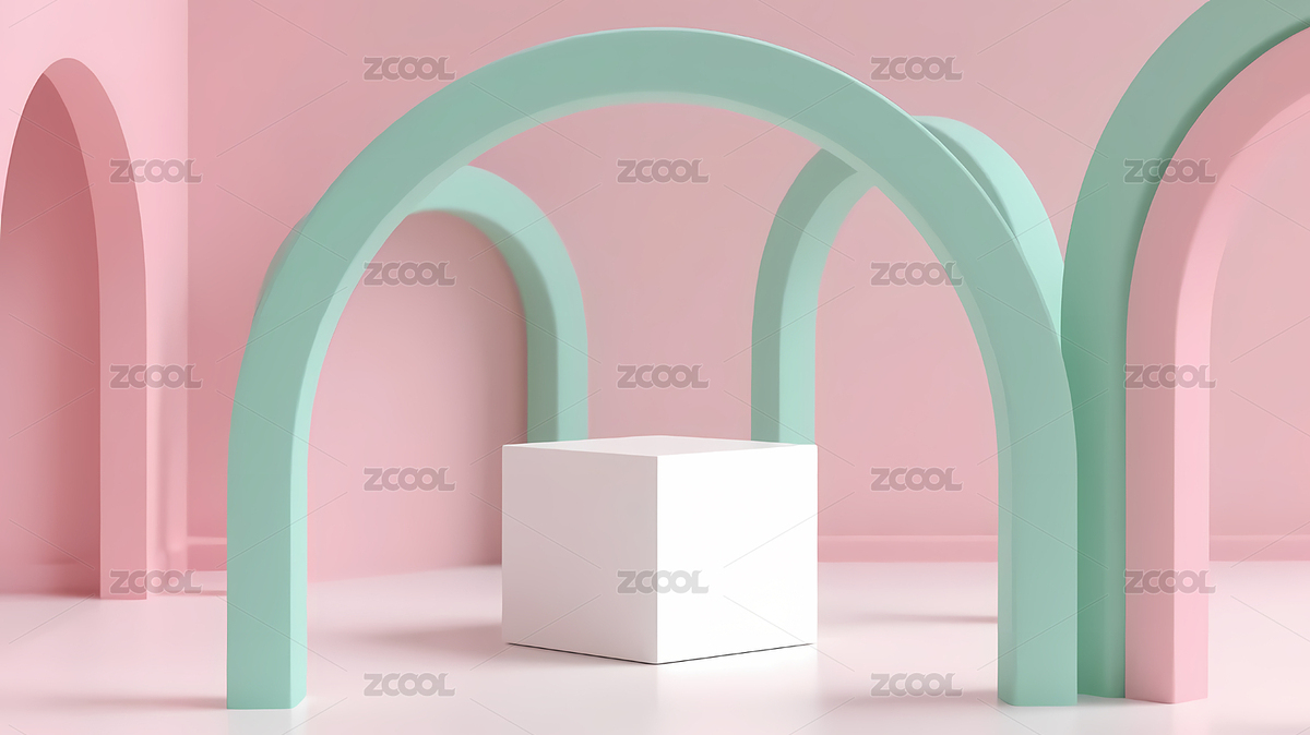 白色,柔和,粉色,设计,立方体,简约,创意,几何,拱形,浅绿
