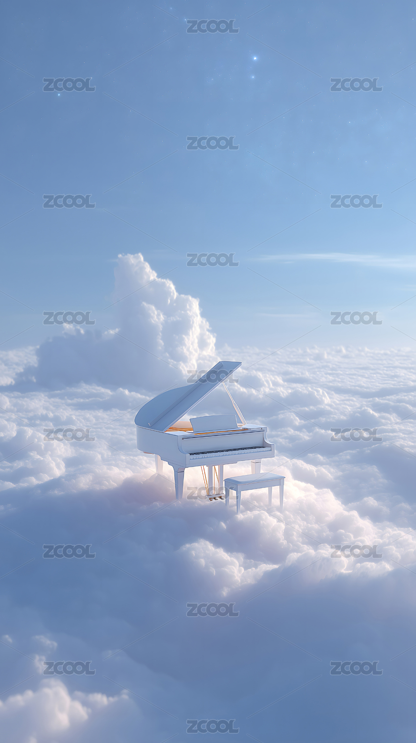 天空,静谧,艺术,钢琴,云朵,梦幻,唯美,浪漫,音乐,光影