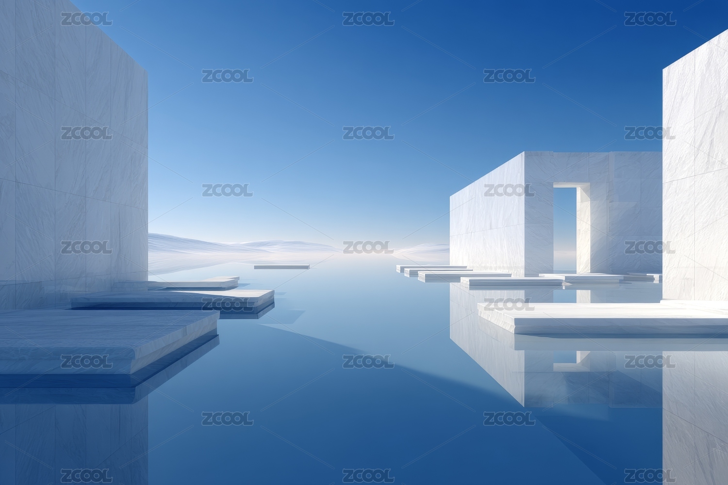 光影,设计,几何,极简,主义,蓝色,艺术,造型,立方体,现代