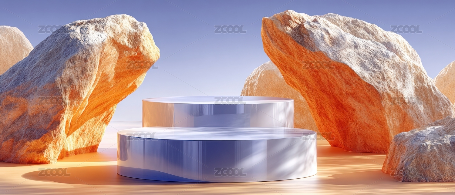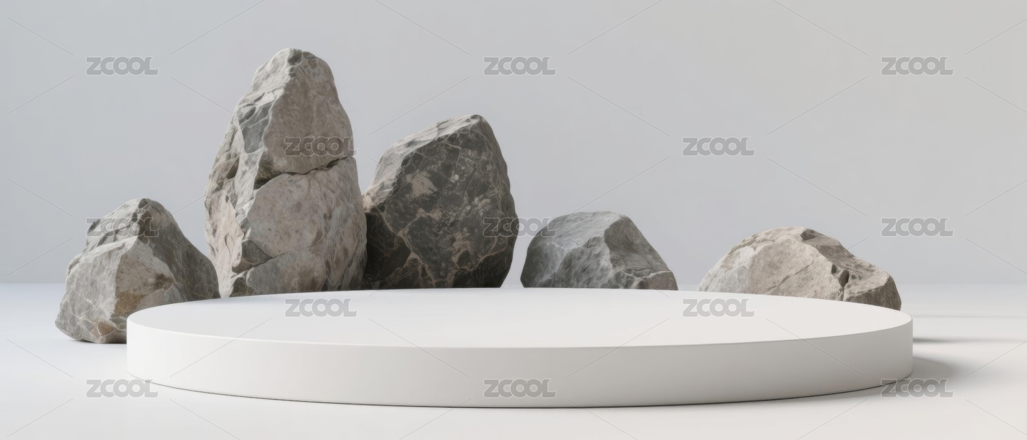 现代简约风格的岩石与几何台座场景