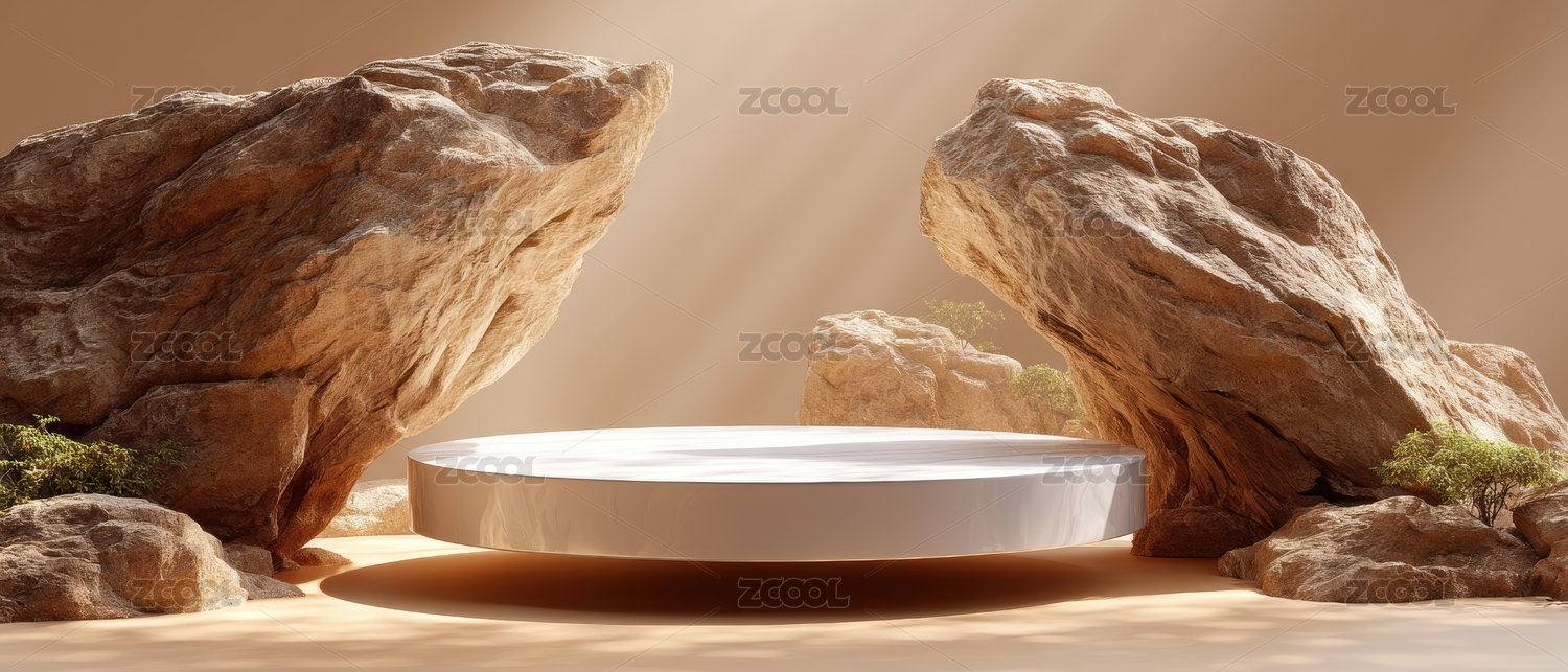 自然岩石背景下的简约圆形展台