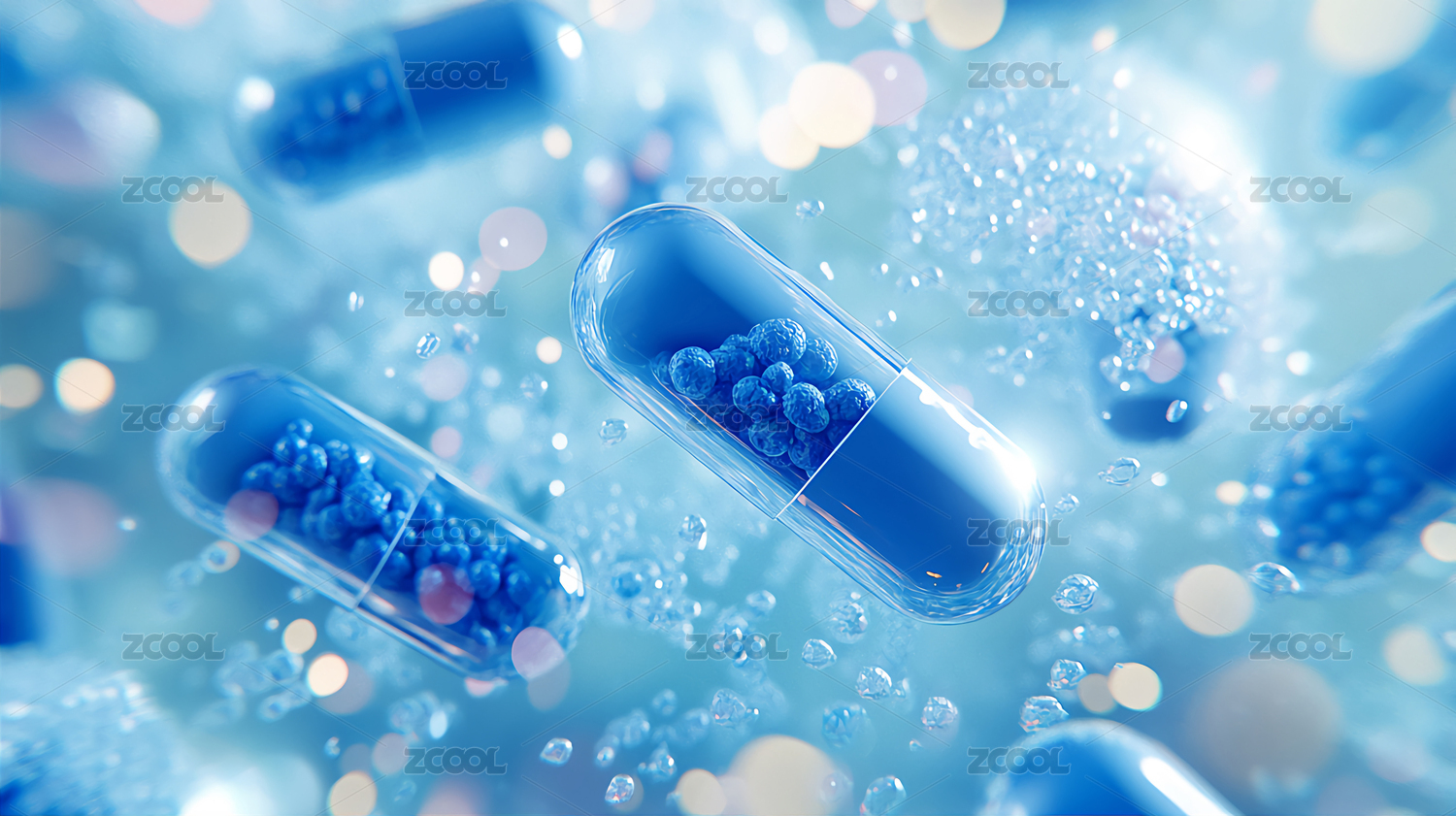 空中漂浮的蓝色药片
