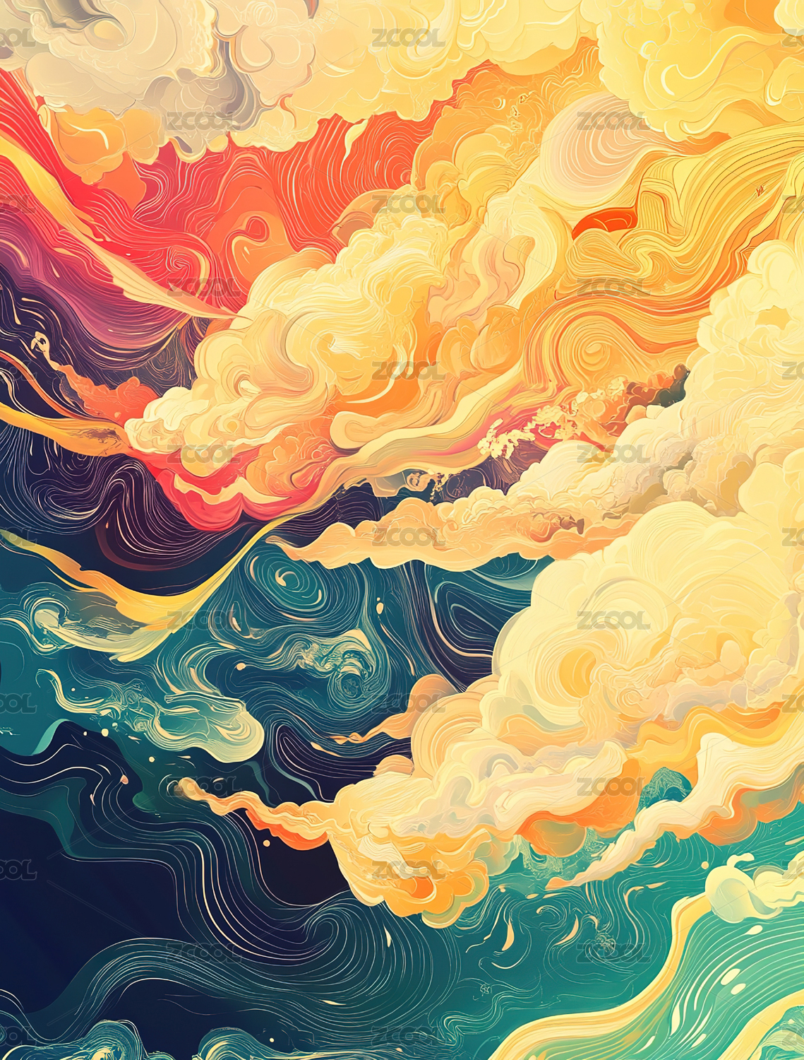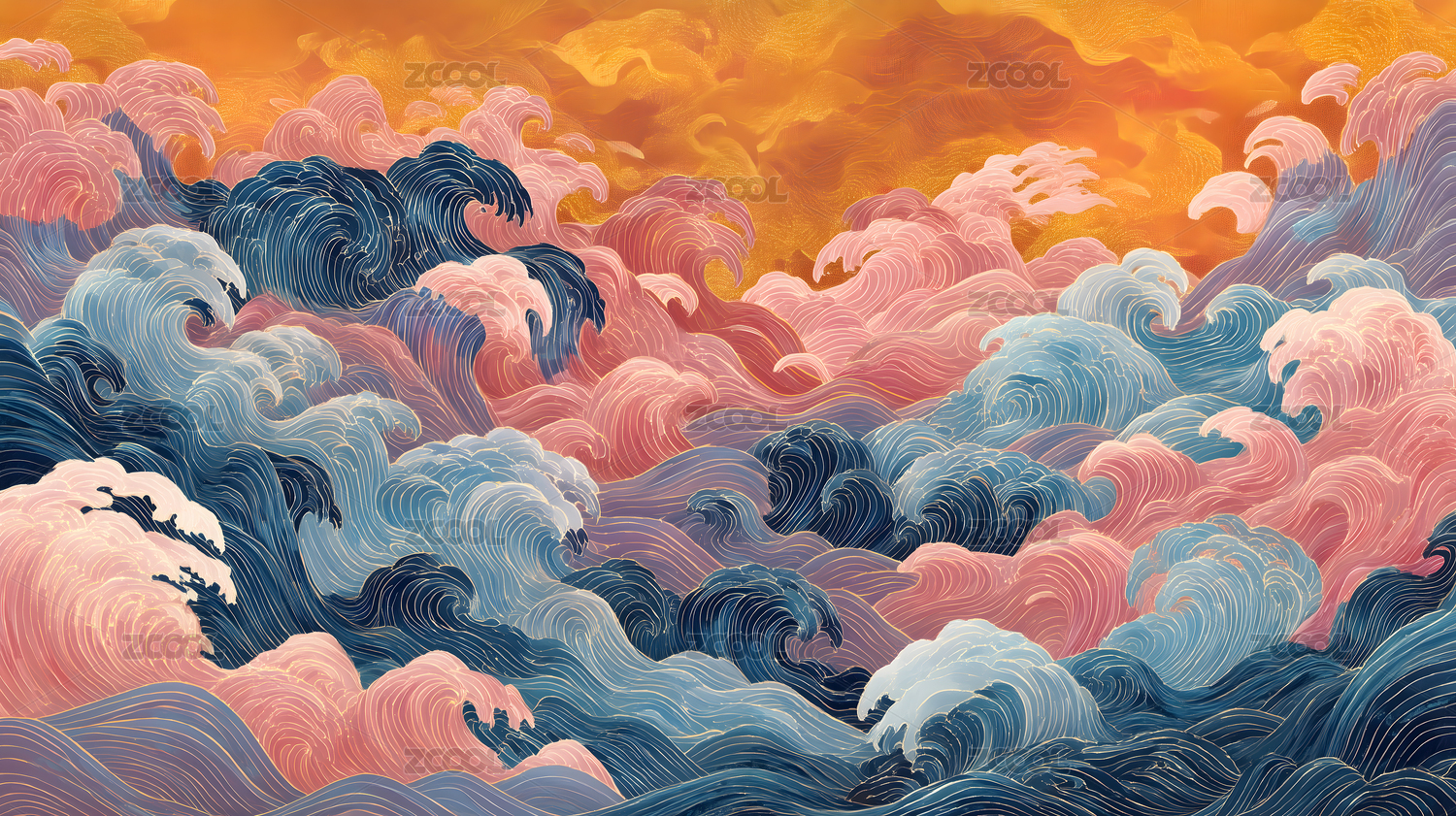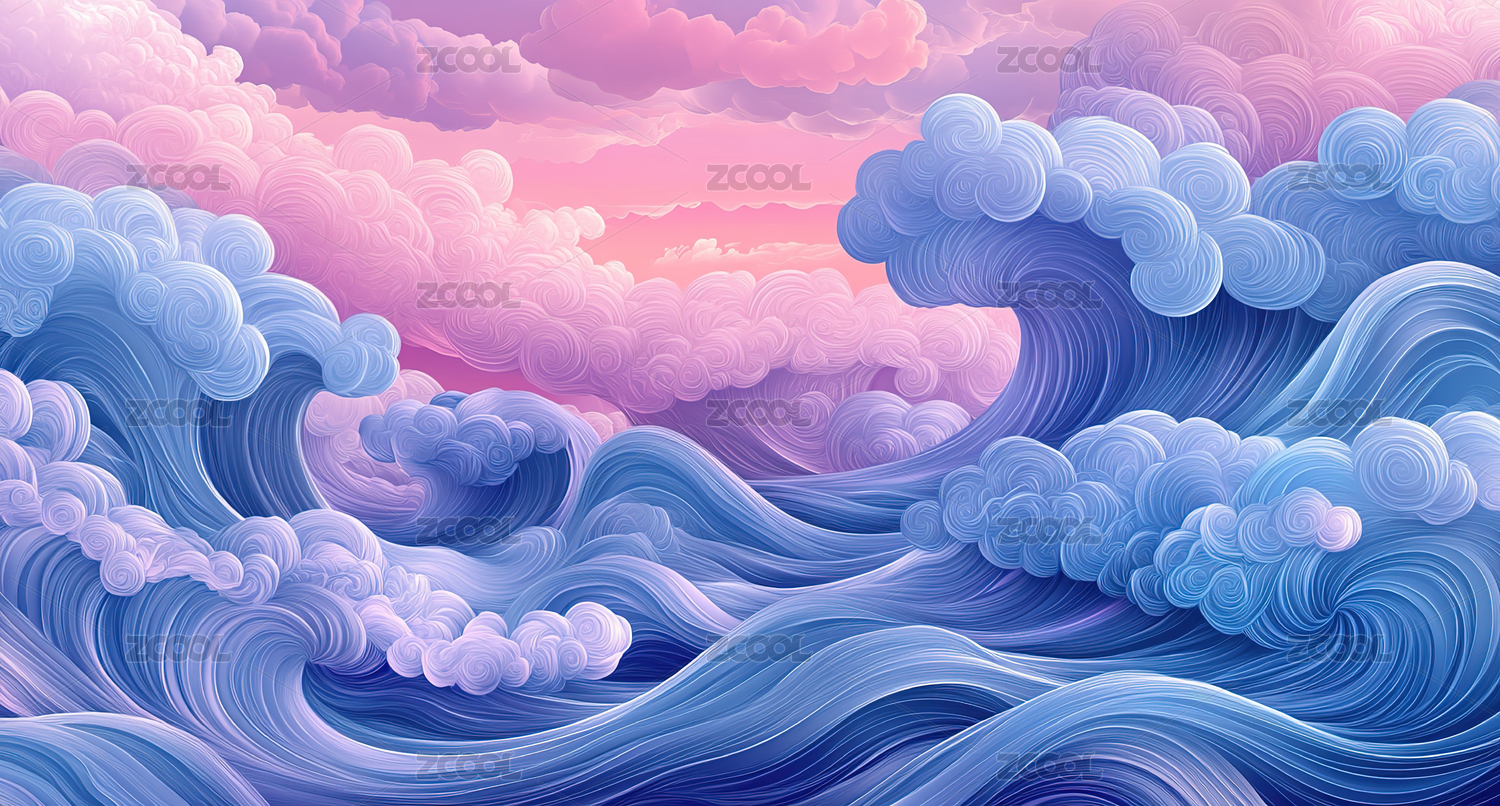 蓝色,彩色,海浪,翻滚,波浪,天空,粉色,紫色,黄色,线条