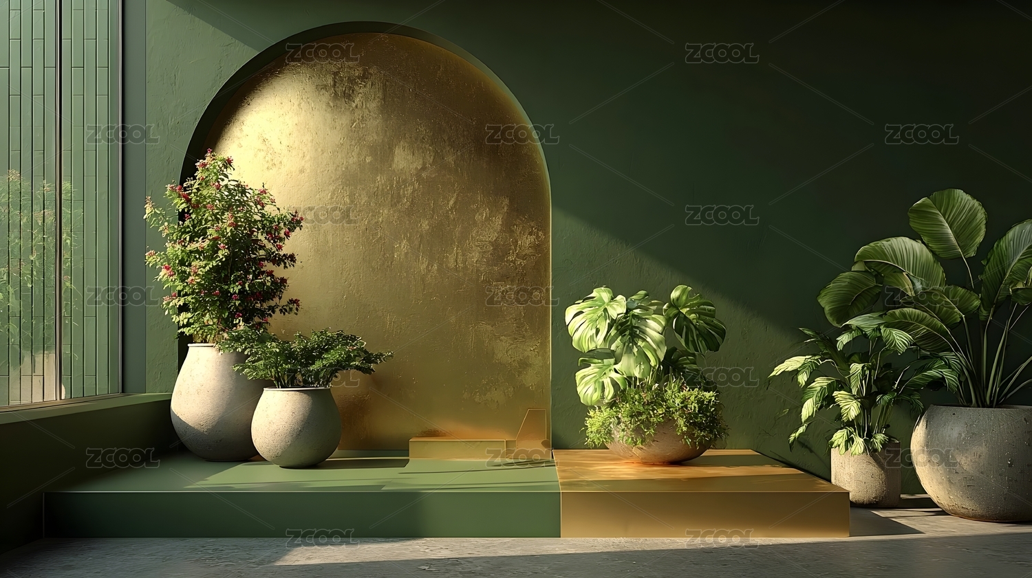 灯光,现代,装饰,室内,绿色,空间,地板,金色,阳光,绿植