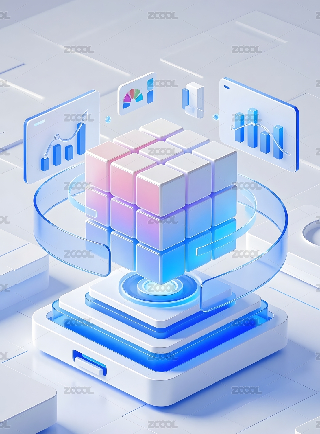 科技立方体与数据图表