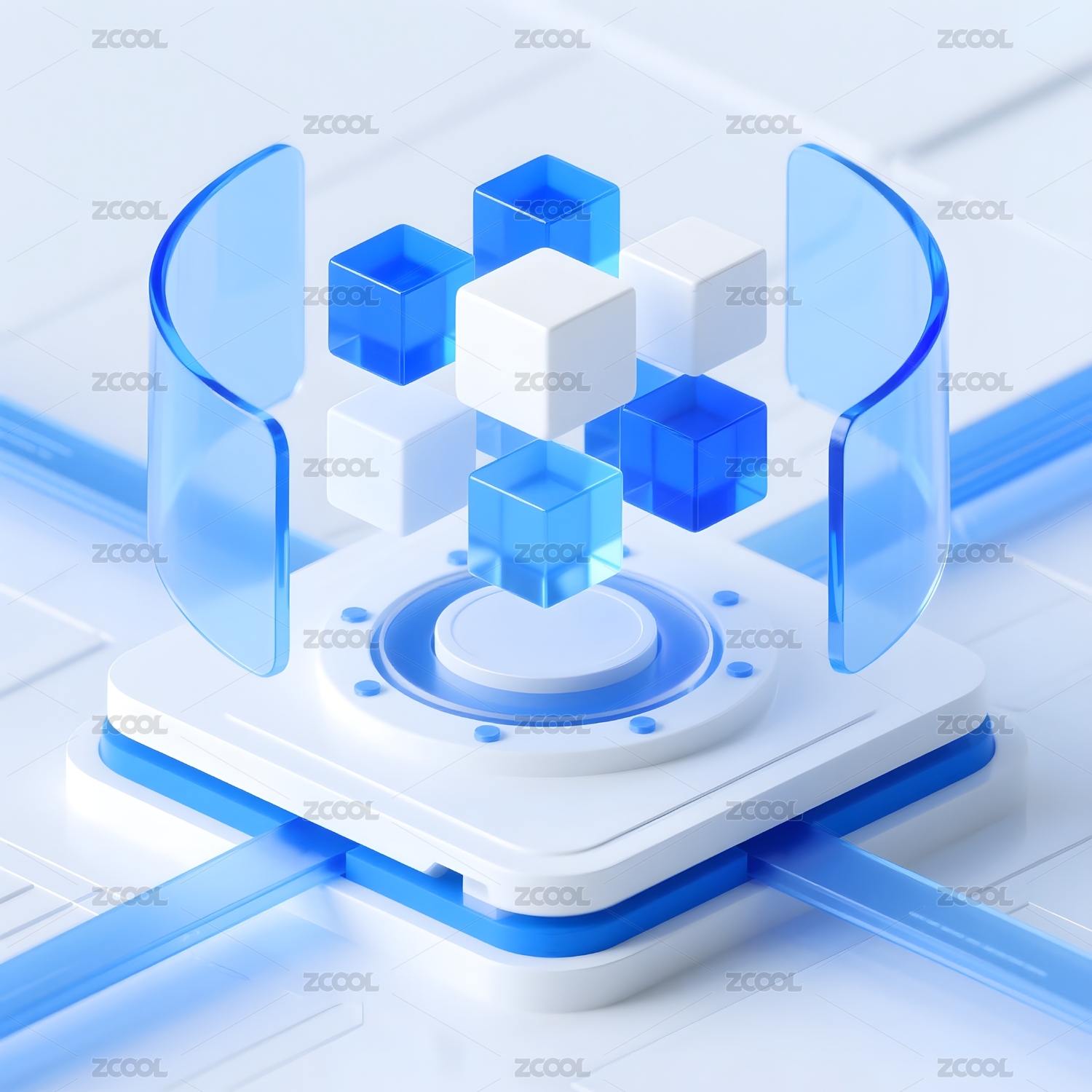 蓝色透明立方体科技感设计