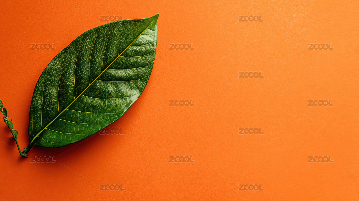 绿色叶子橙色背景
