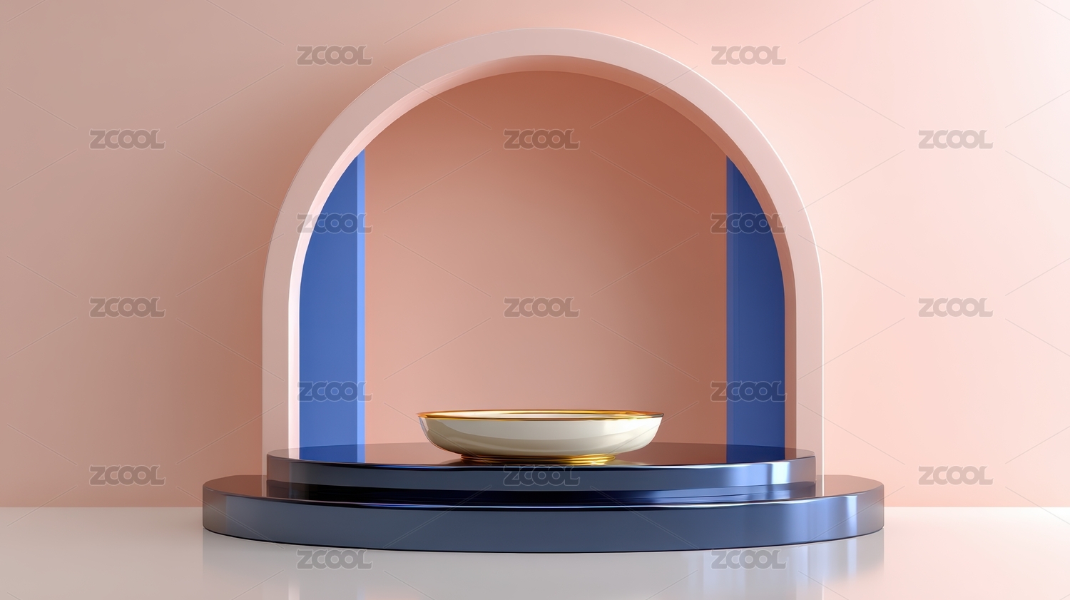 简约粉色拱门下的金色底座展示